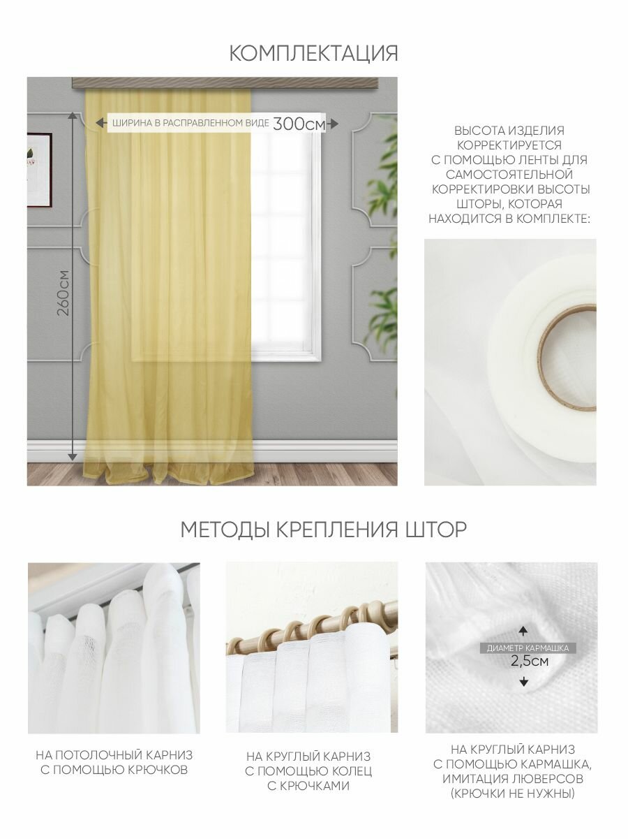 СохранитьШтора вуаль Witerra, 300х260 см, светло-желтый интересное: