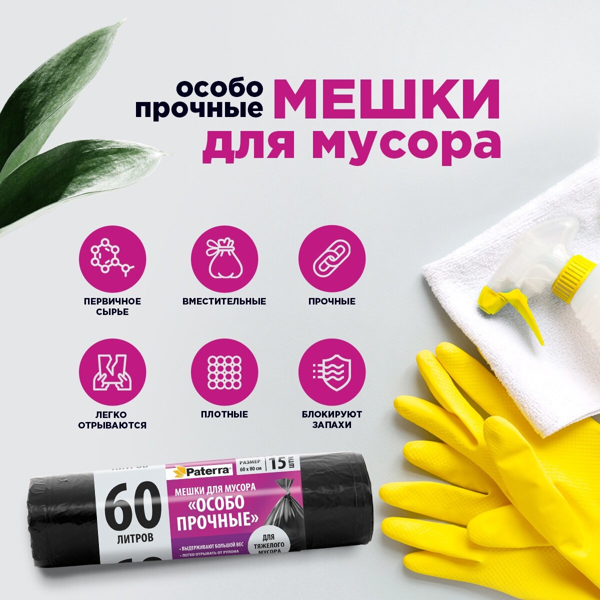 Мешки для мусора Paterra Черные, особо прочные, 60 л, 15 шт интересное: