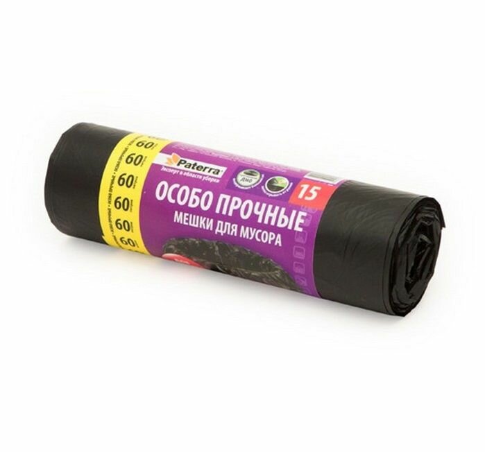 Купить Мешки для мусора Paterra Черные, особо прочные, 60 л, 15 шт
