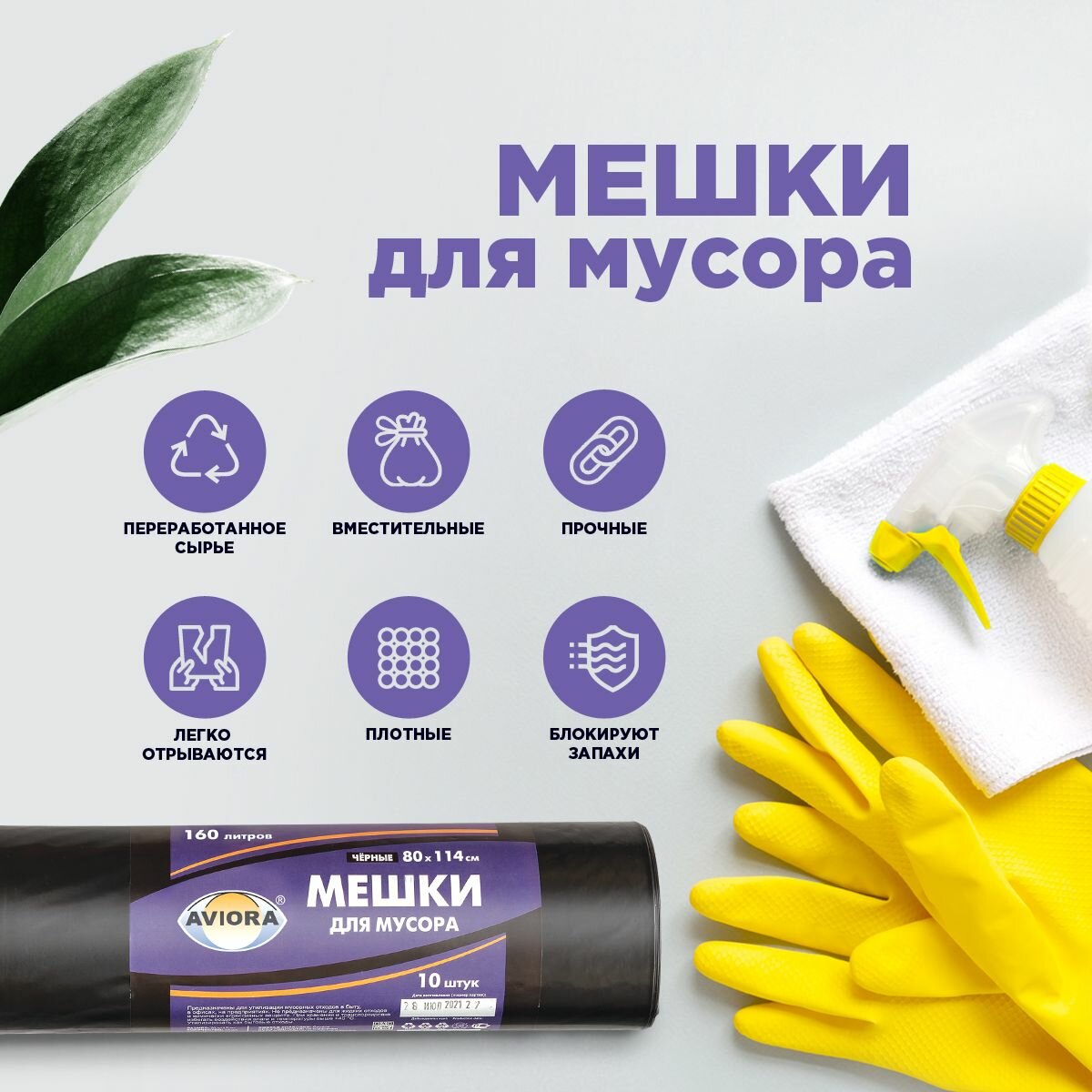 Мешки для мусора 160л, 80*114см "AVIORA",10шт в рулоне