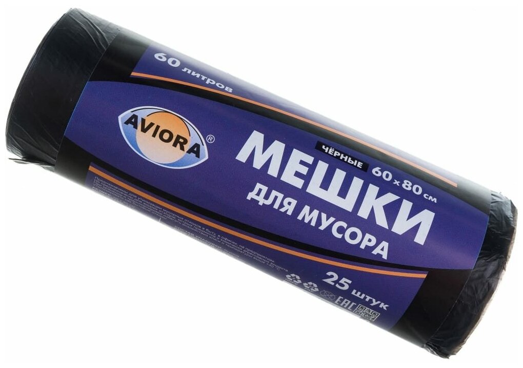 Купить Мешки для мусора 60л, 60*80см "AVIORA",25шт в рулоне