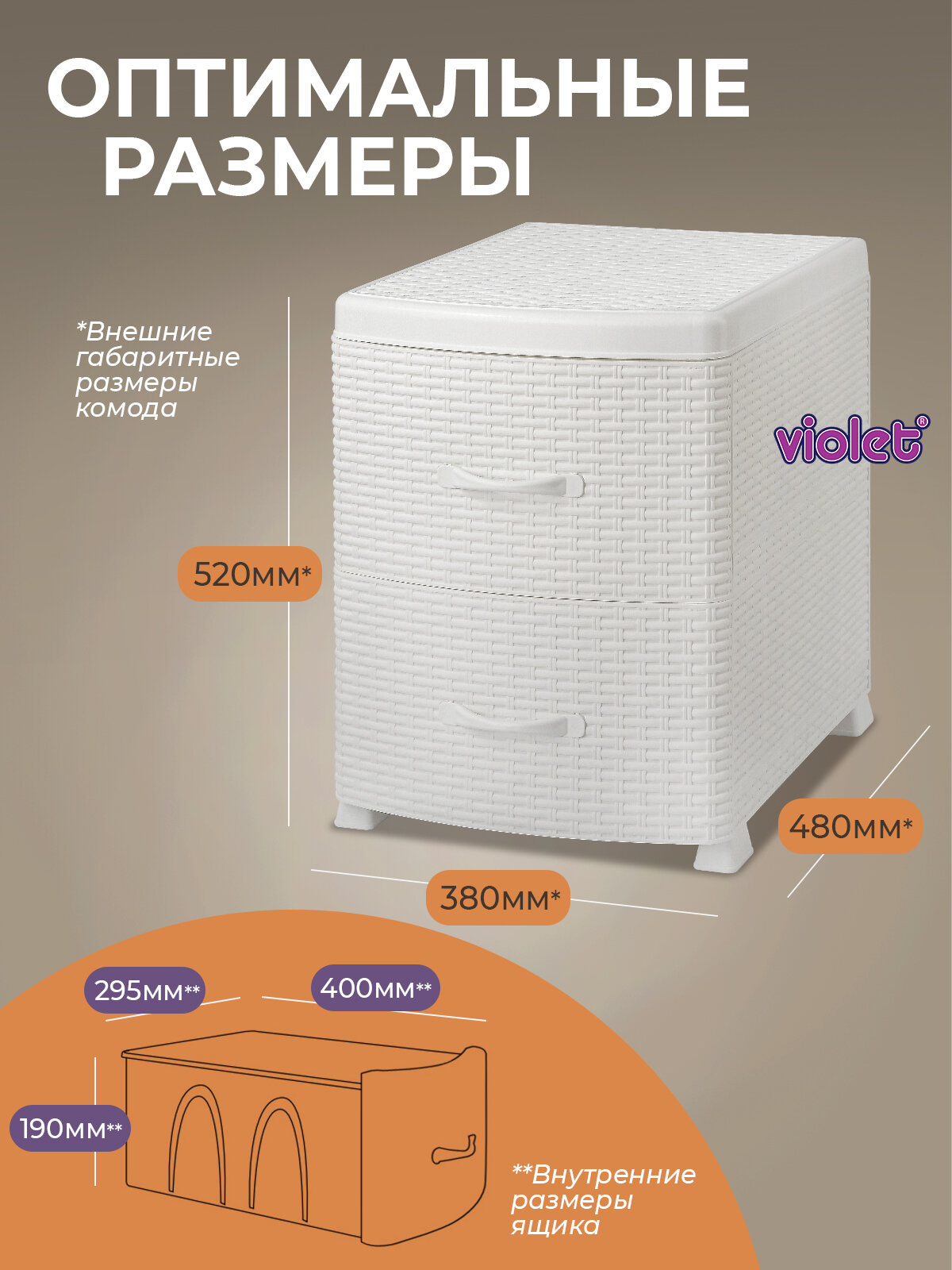 Купить Комод пластиковый Ротанг с 2 ящиками, цвет белый / тумба для хранения вещей
