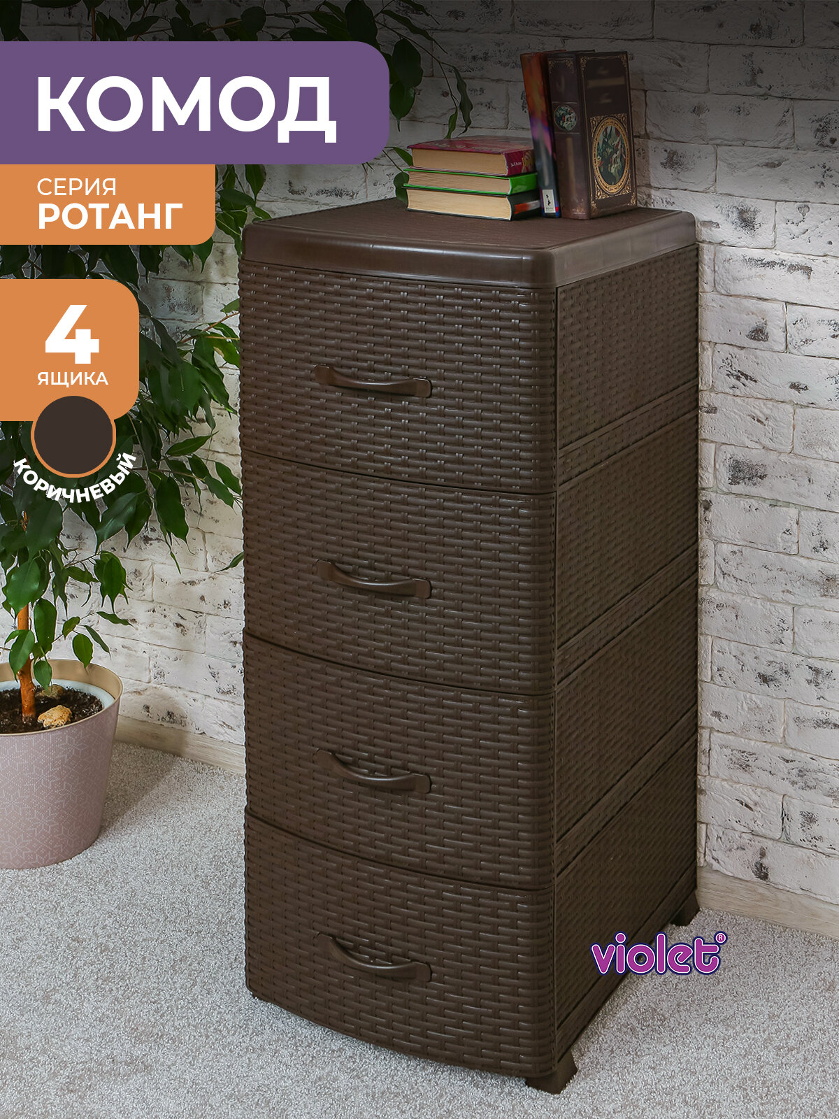 Комод пластиковый Violet Ротанг коричневый, 4 секции