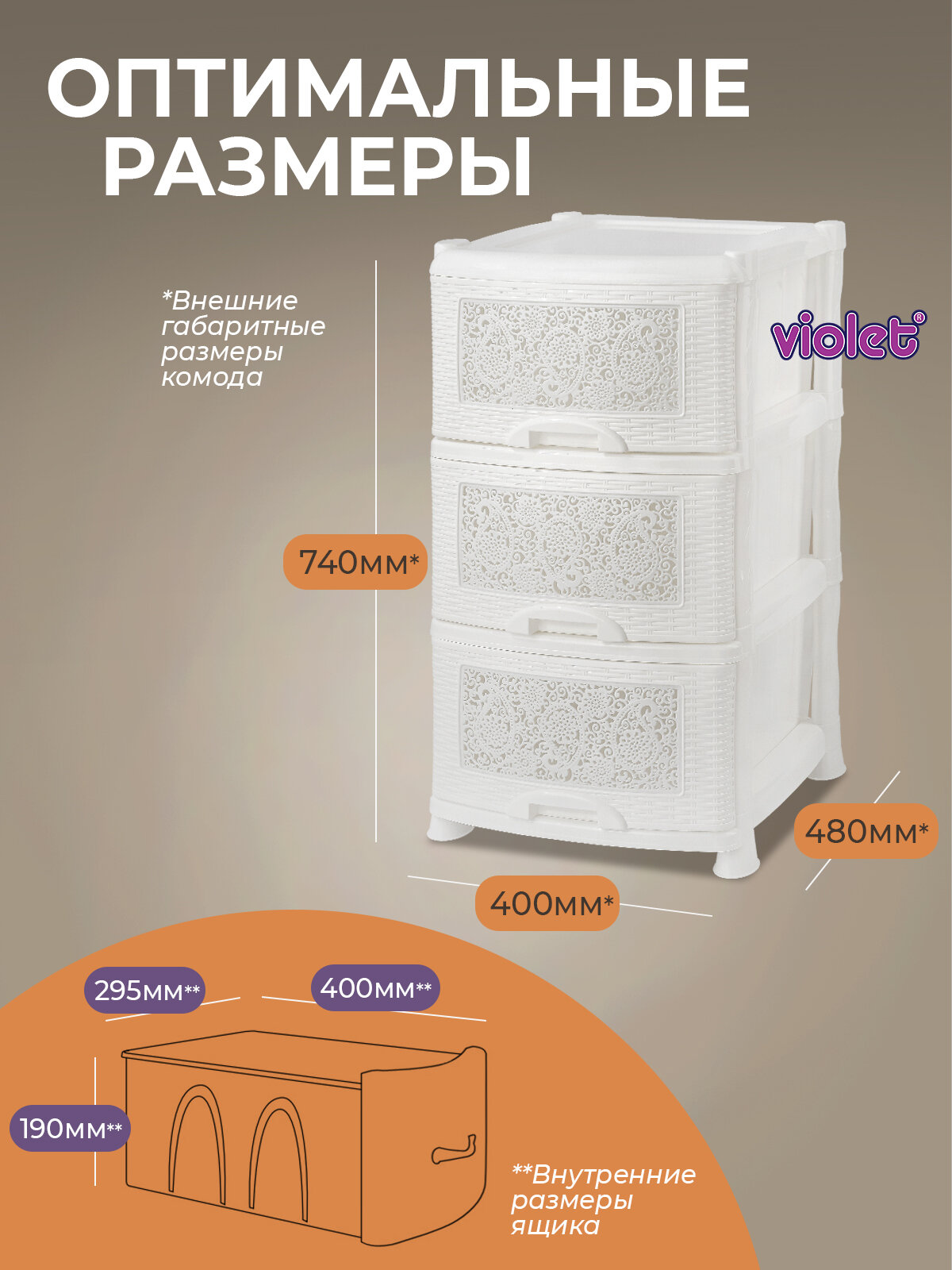 | Плюсы: | Комод Violet Плетенка - удобный , легкий, дешевый, выглядит привлекательно. |