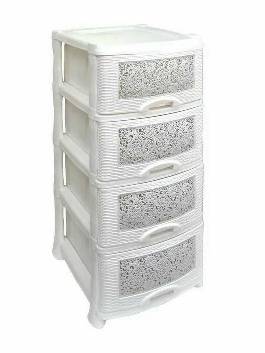 Комод пластиковый Плетёнка с 4 ящиками / универсальный стеллаж для хранения вещей / органайзер для аксессуаров, цвет белый