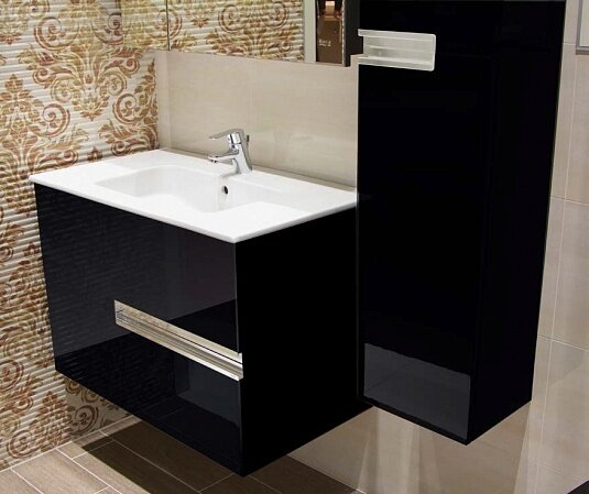 Тумба под раковину Roca Victoria Nord Black Edition 80 черный глянец (ZRU9000097)