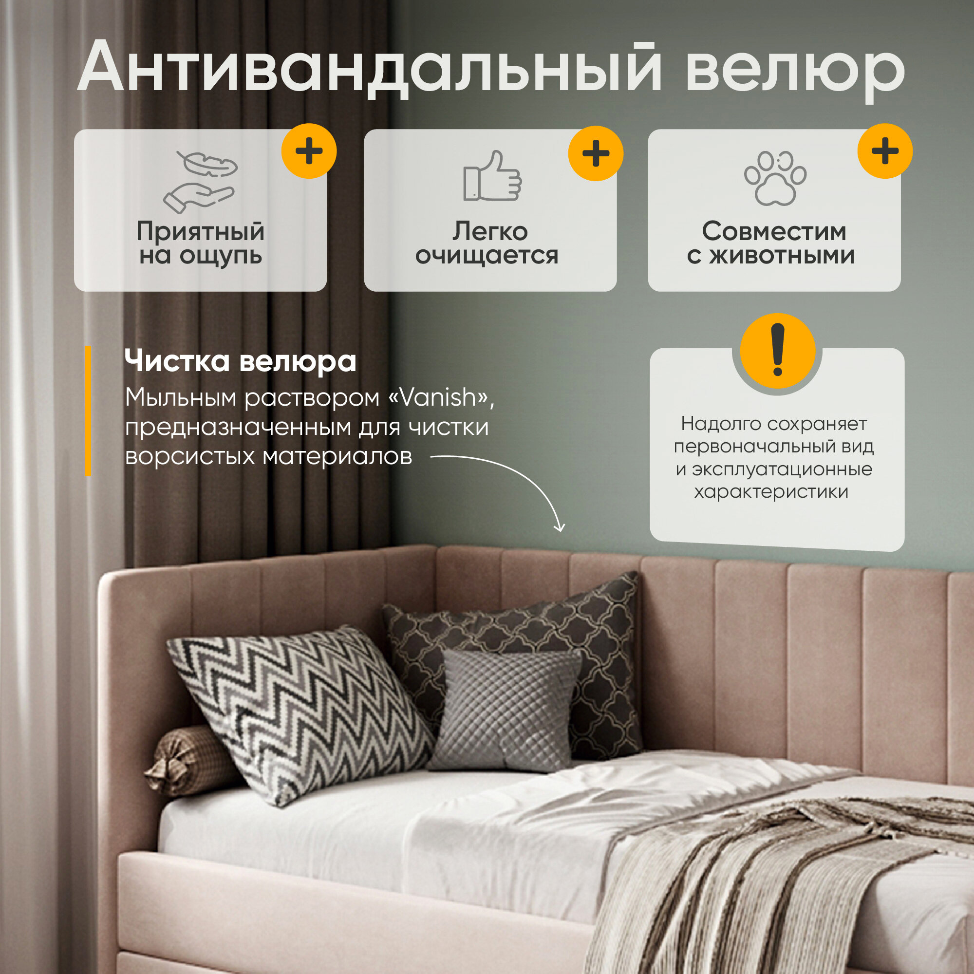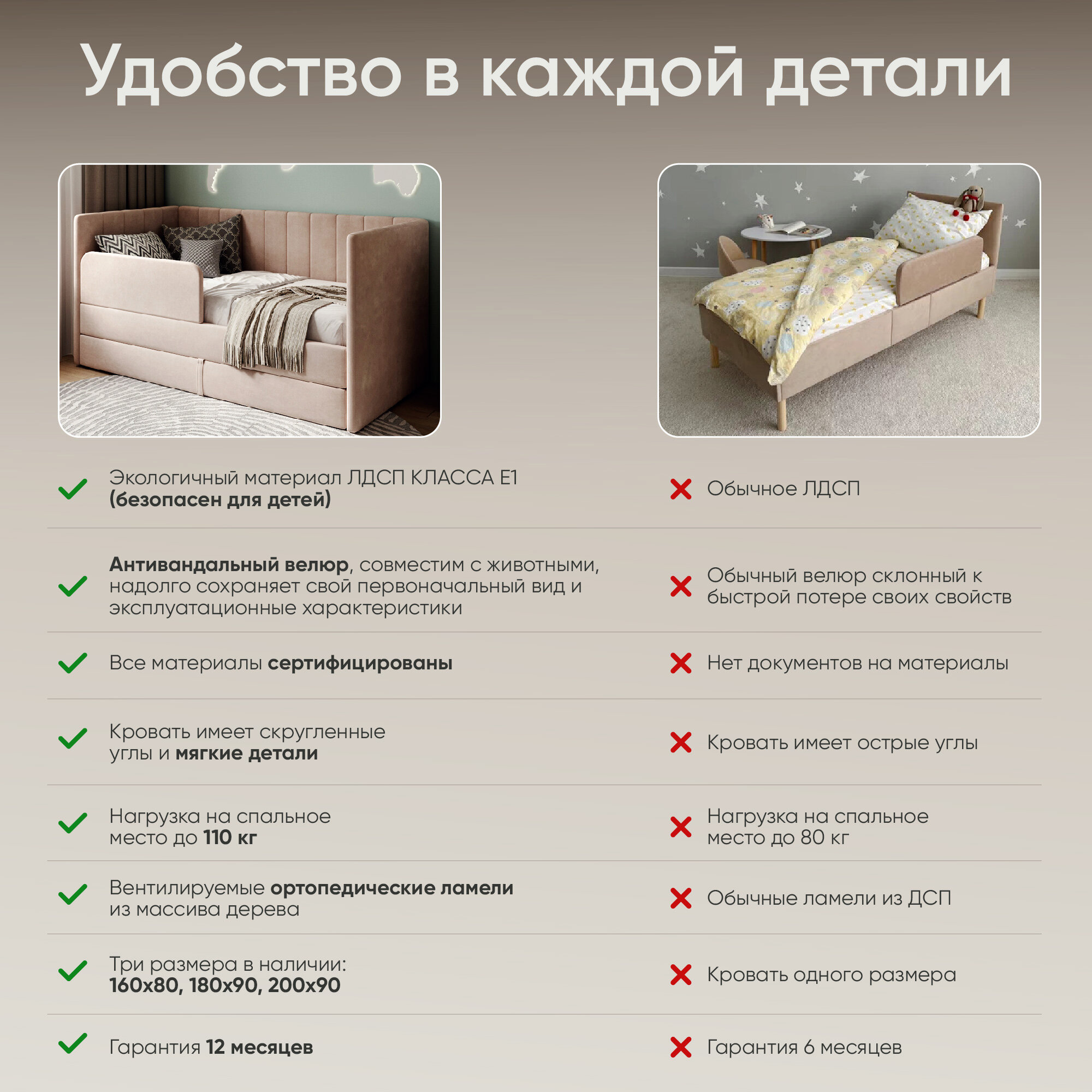 Кровать детская Huggy с защитным бортиком и выкатным ящиком 180х90 см, цвет Бежевый, диван кровать с мягким изголовьем