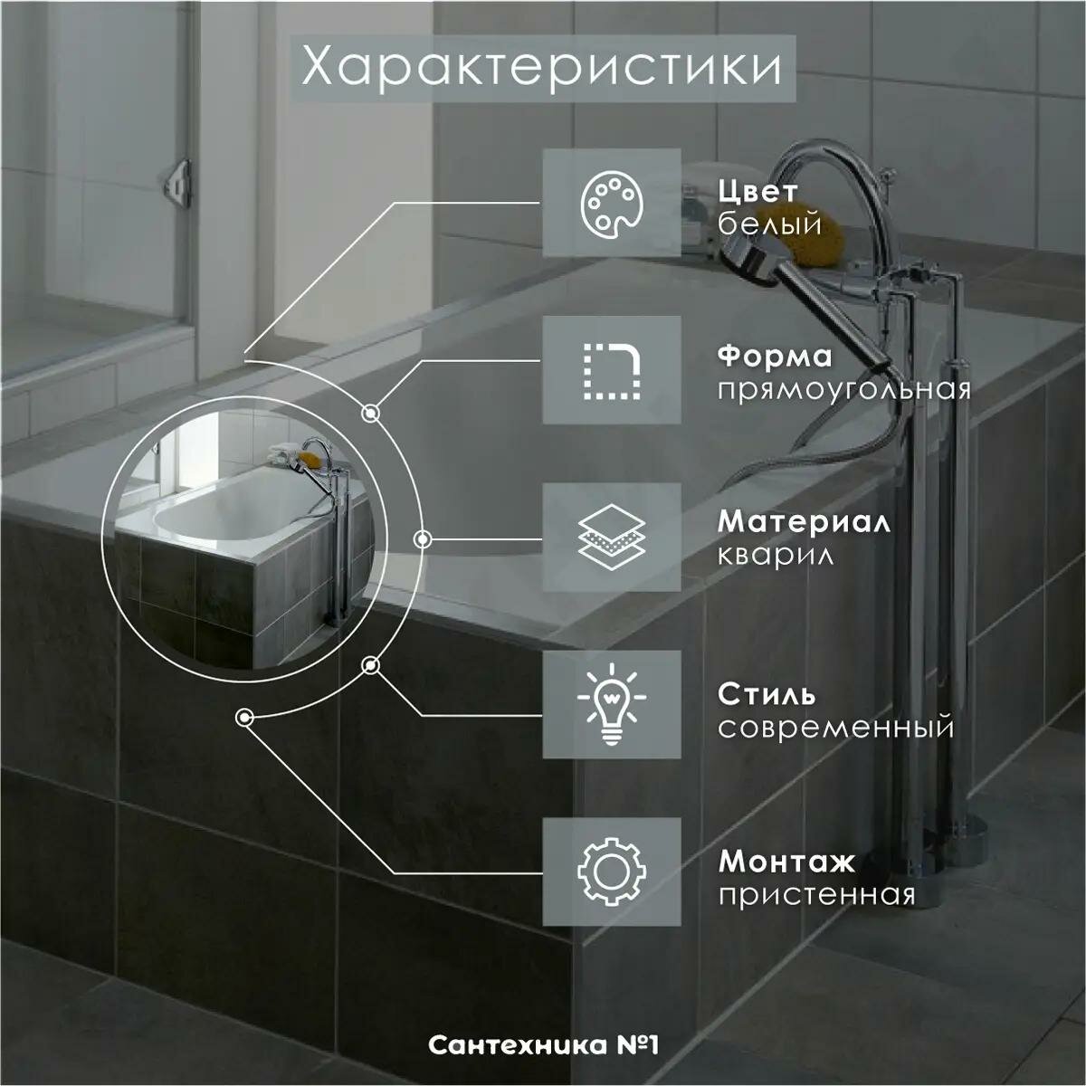 Ванна прямоугольная Villeroy&Boch Oberon материал Quaryl 1700х750х450 мм белая, (без монтажного комплекта/ножек)