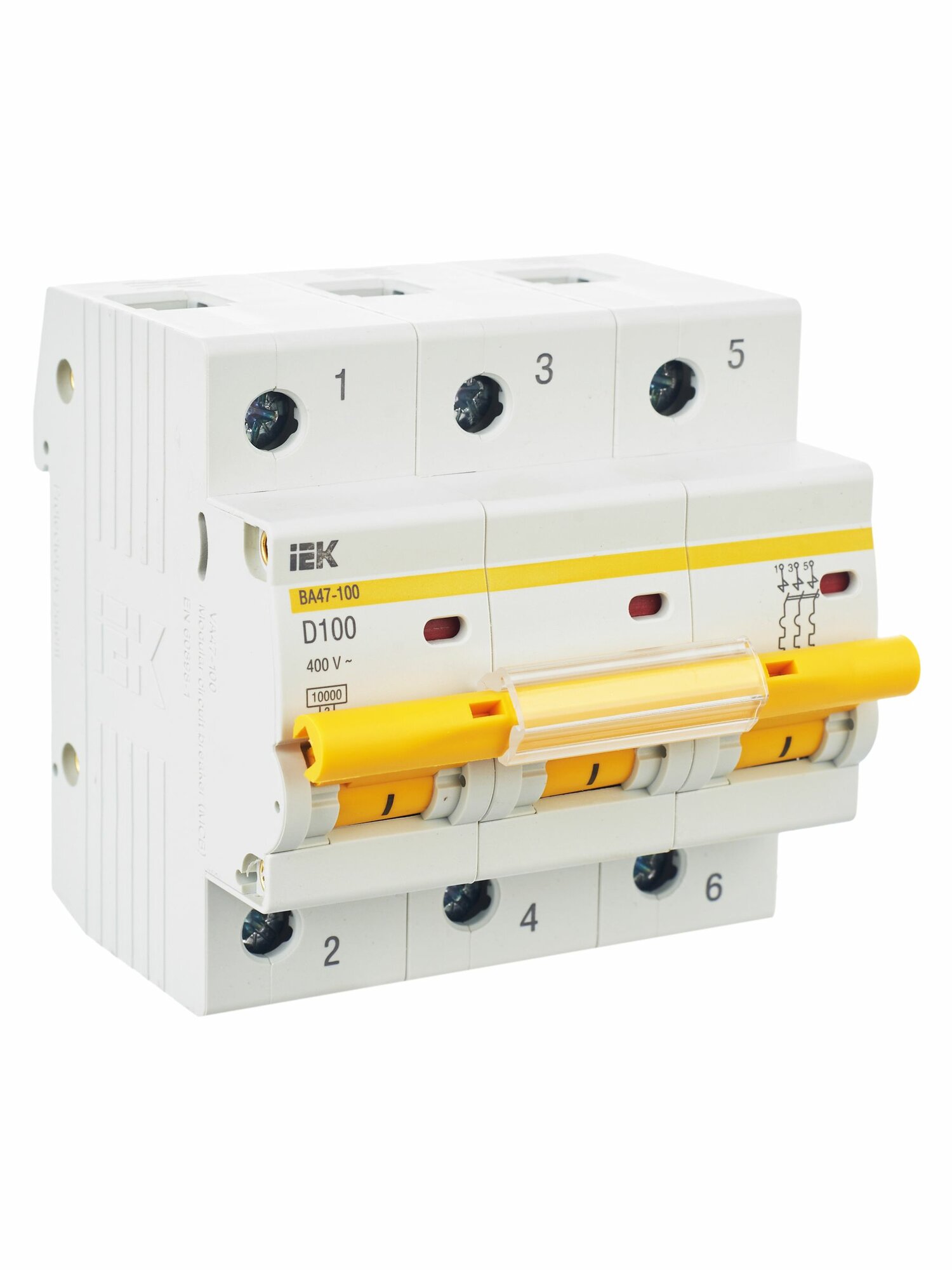 2шт. - Выключатель автоматический трехполюсный 100А D ВА47-100 10кА / IEK; арт. MVA40-3-100-D; оригинал / - комплект 2шт