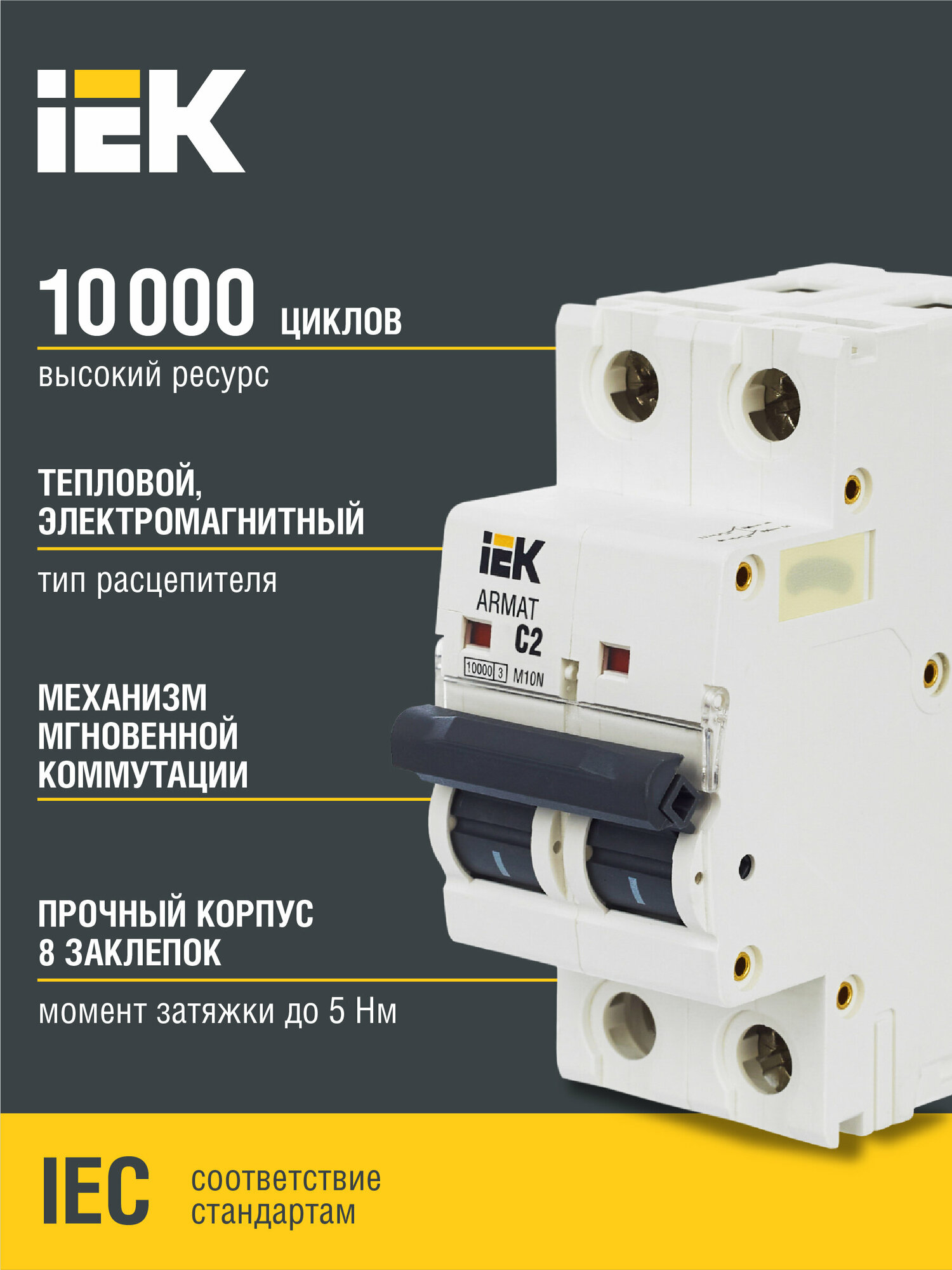Купить ARMAT Выключатель автоматический двухполюсный C 2А M10N , IEK AR-M10N-2-C002 (1 шт.)