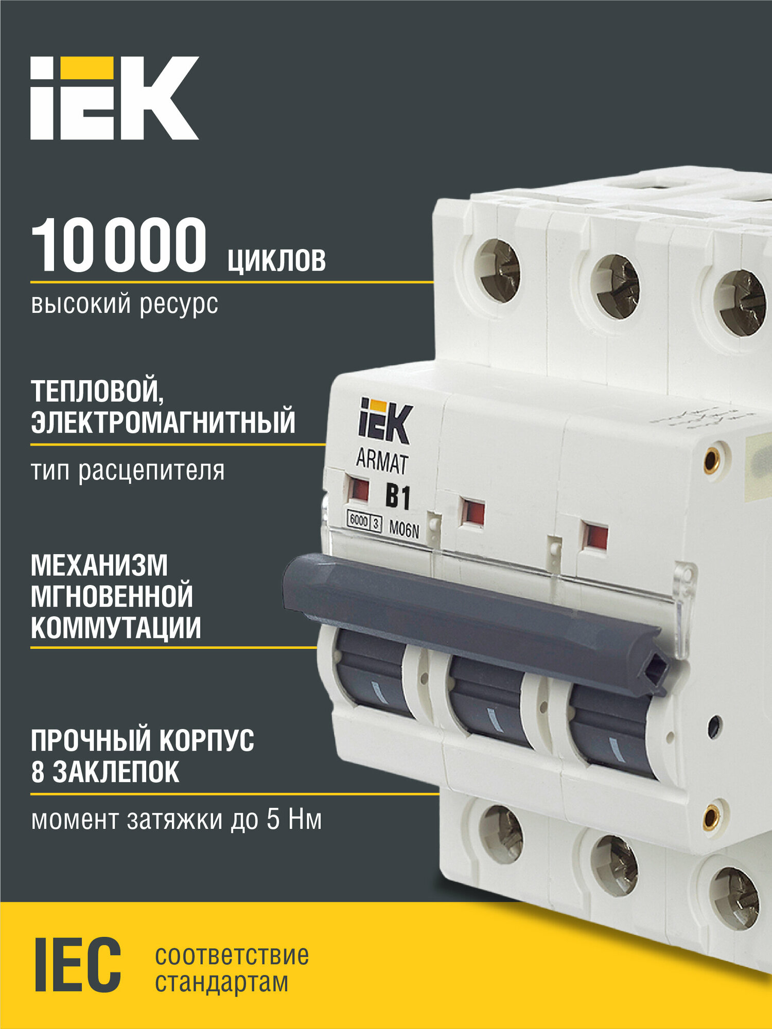 СохранитьARMAT Выключатель автоматический трехполюсный B 1А M06N , IEK AR-M06N-3-B001 (1 шт.) интересное: