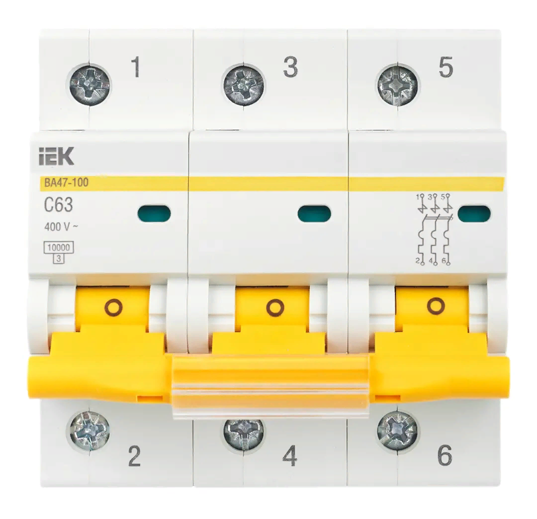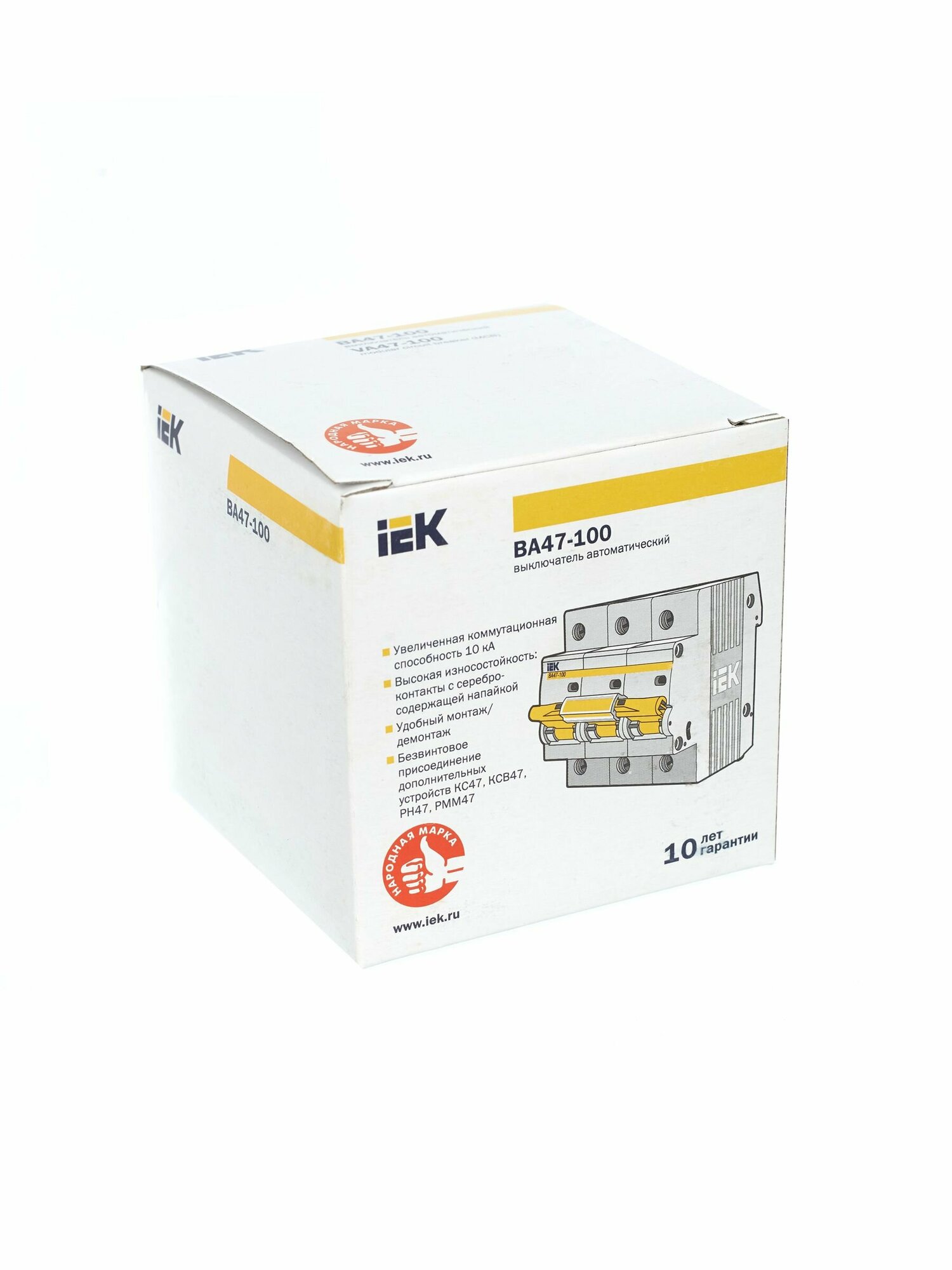 Выключатель автоматический трехполюсный ВА47-100 63А C 10кА MVA40-3-063-C IEK (4шт.в упак.)