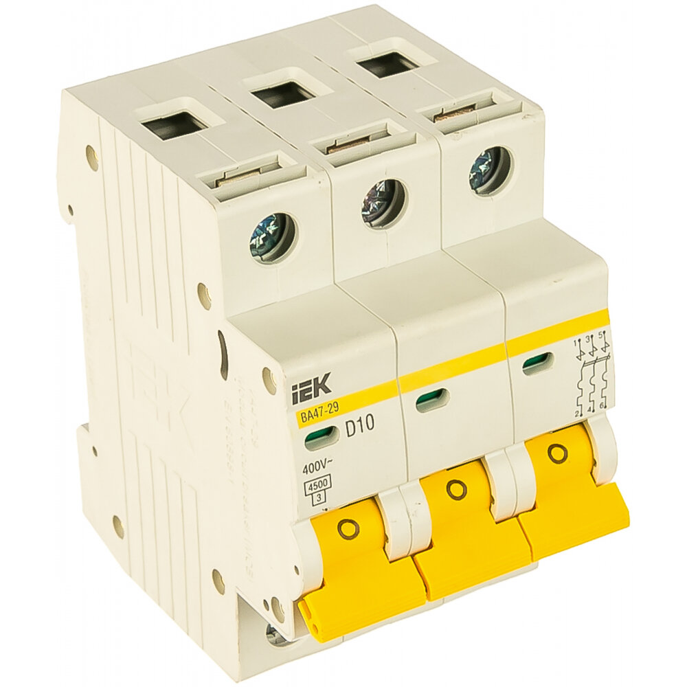 Купить Выключатель автоматический трехполюсный 10А D ВА47-29 4.5кА MVA20-3-010-D IEK