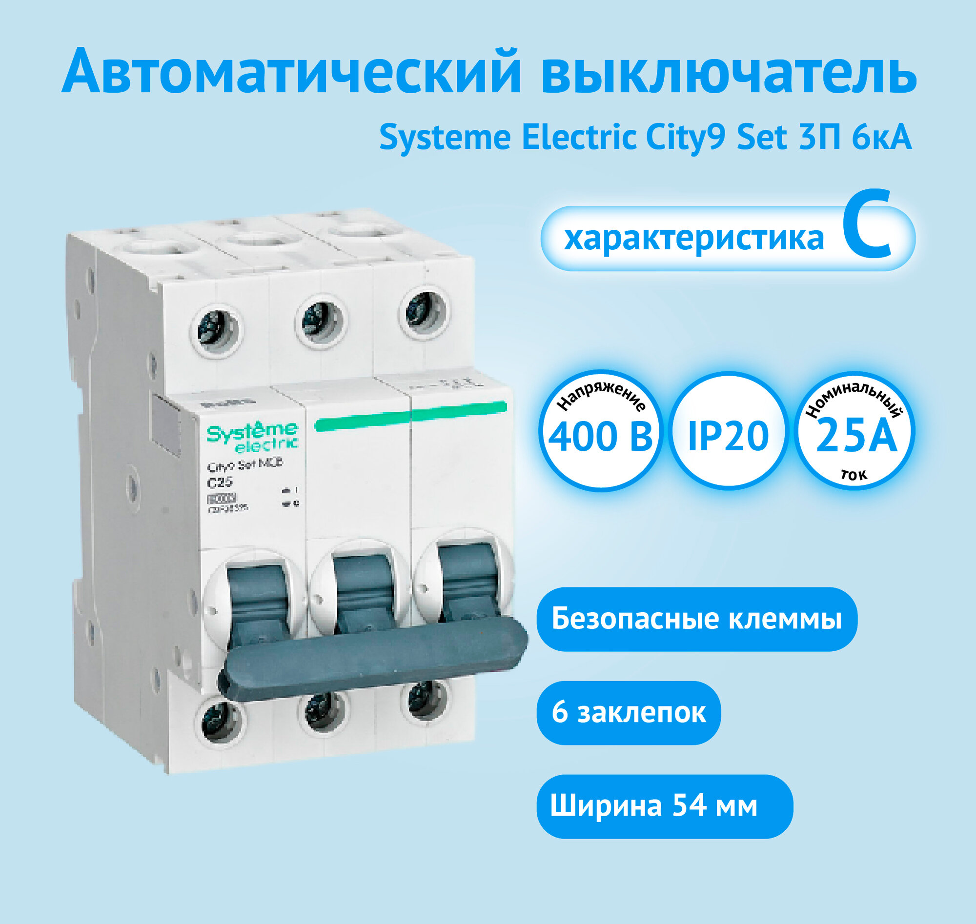Купить Автоматический выключатель Systeme Electric City9 Set С 25А 3P 6kA 400В