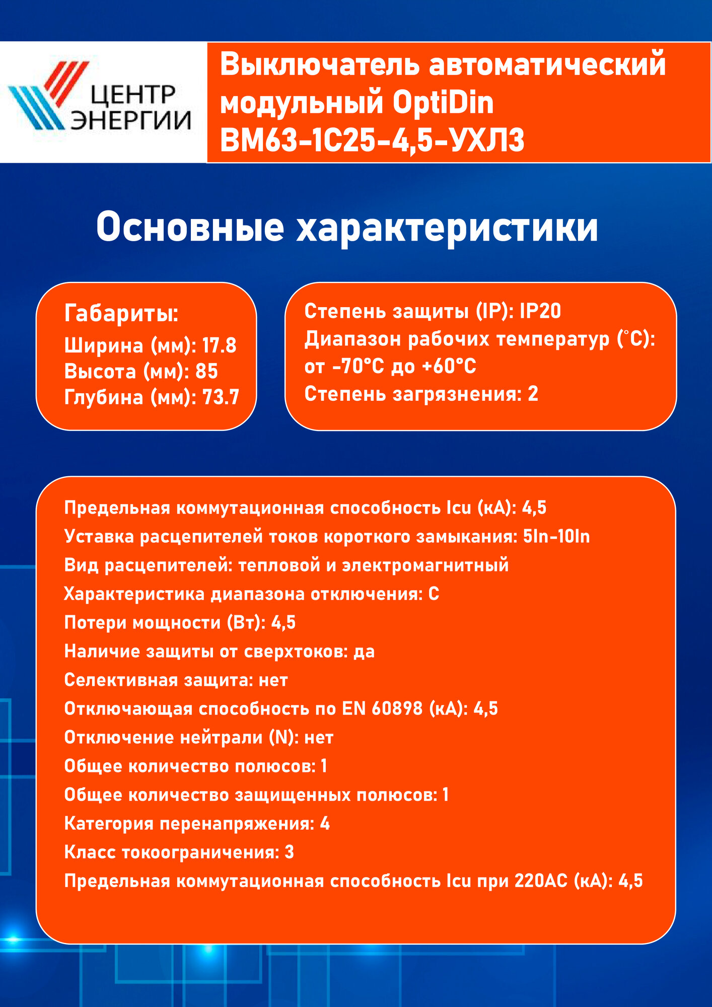 СохранитьВыключатель автоматический модульный OptiDin BM63-1C25-4,5-УХЛ3 интересное: