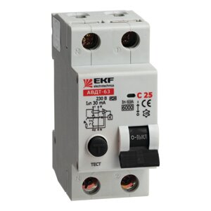 Дифференциальный автоматический выключатель EKF PROxima АВДТ-63 25А, С, 30мА, тип A, 6кА, электронный