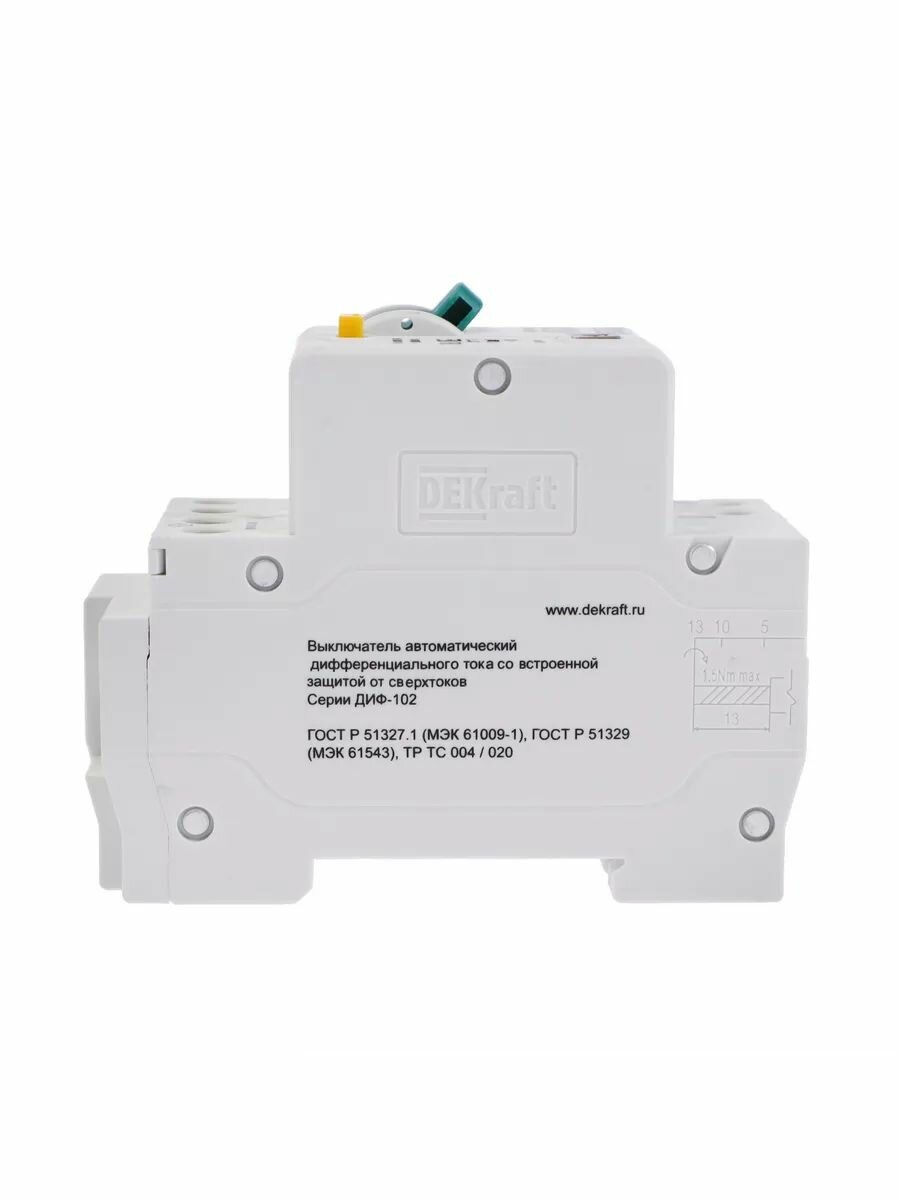 Дифференциальный автомат DEKraft ДИФ-102 2П 30 мА C 4.5 кА AC электромеханический 32 А