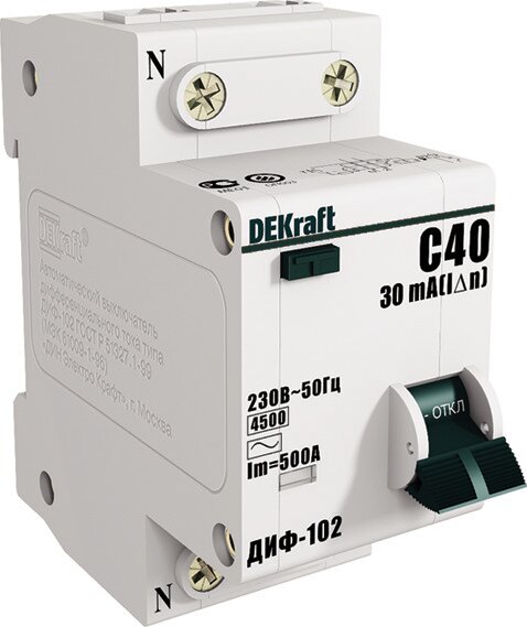 Дифференциальный автомат ДИФ-102 1P+N DEKraft 40A 30mA тип AC 4,5 kA (х-ка C)