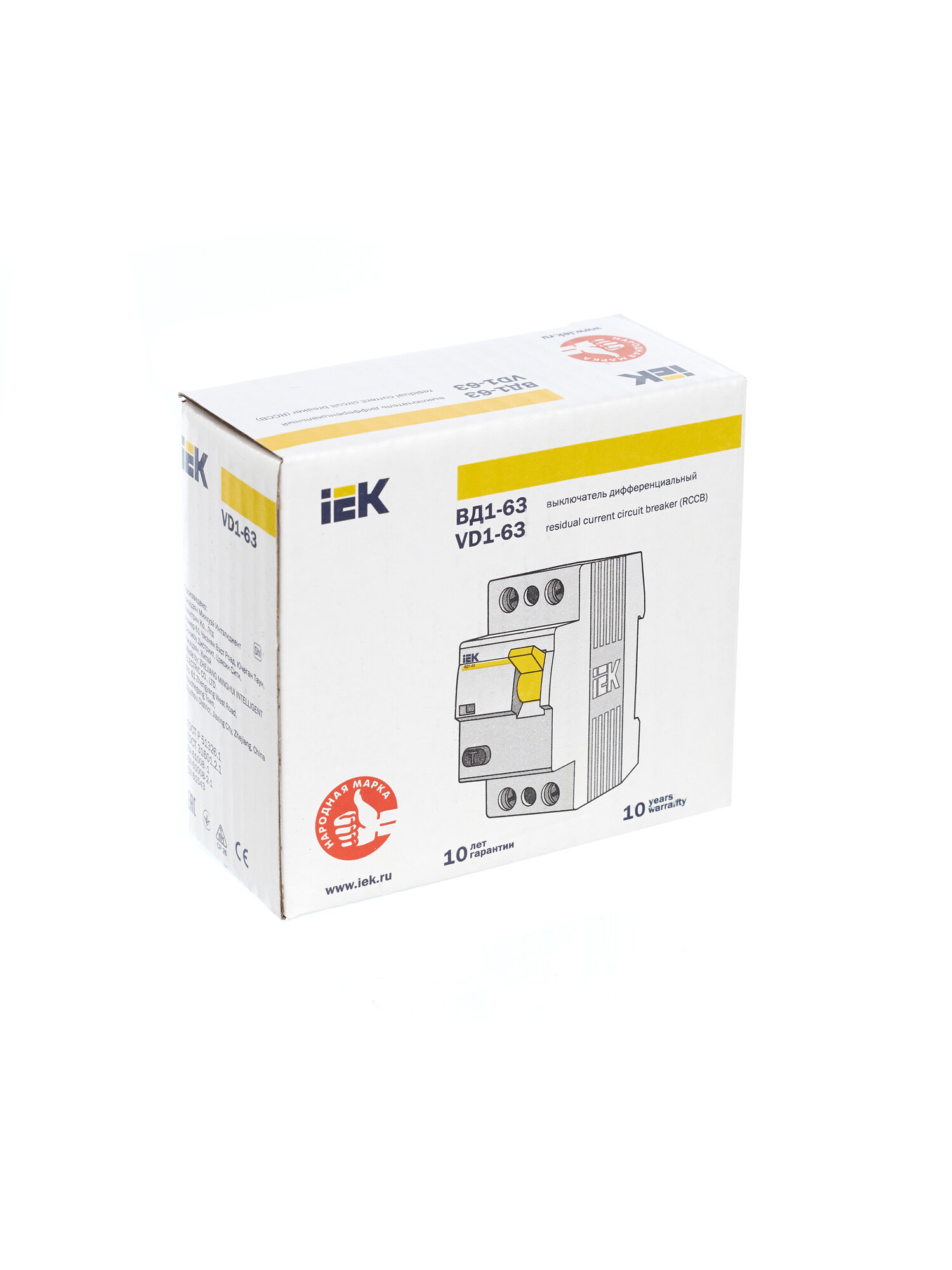 Дифференциальный выключатель нагрузки УЗО ВД1-63 2 полюса, 63А, Тип AC, 30мА. MDV10-2-063-030 IEK