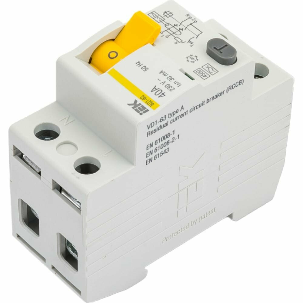 Выключатель дифференциального тока (УЗО) 2п 40А 30мА тип A ВД1-63, IEK MDV11-2-040-030 (1 шт.)