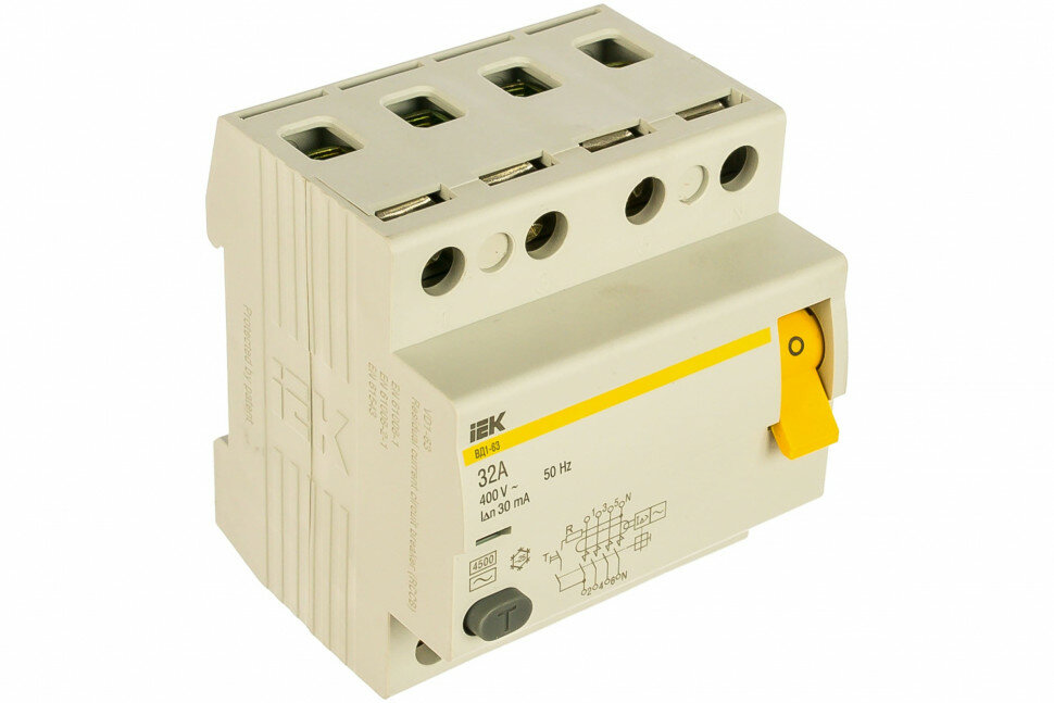 Купить IEK KARAT Выключатель дифференциальный ВД1-63 (УЗО) 4Р 32А 30мА MDV10-4-032-030