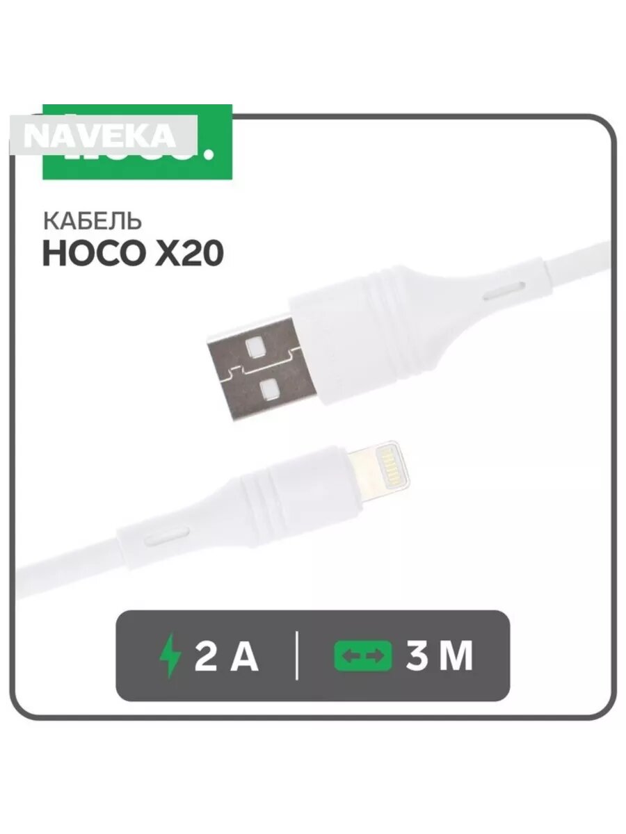 Кабель Hoco X20, Lightning - USB, 2 А, 3 м, PVC оплетка, белый