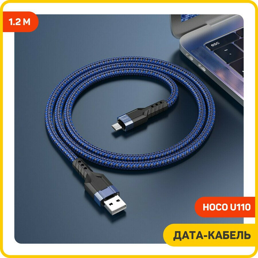 Купить Дата-кабель Hoco U110 USB-MicroUSB, 1.2 м, синий