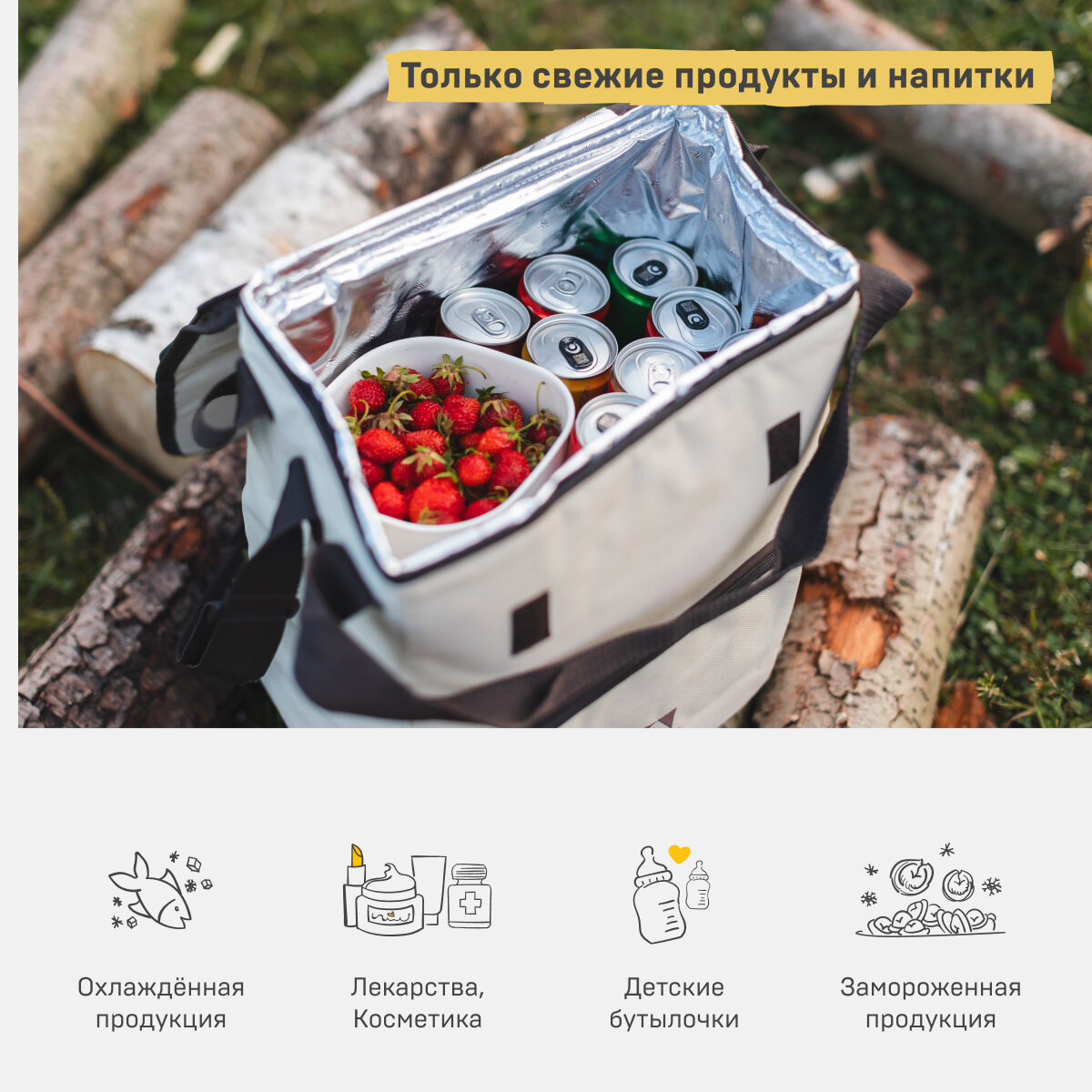 Термосумка холодильник для ланч-бокса Арктика 3300-7 бежевый 7.5 литров сумка для обеда с ручками и внешним карманом