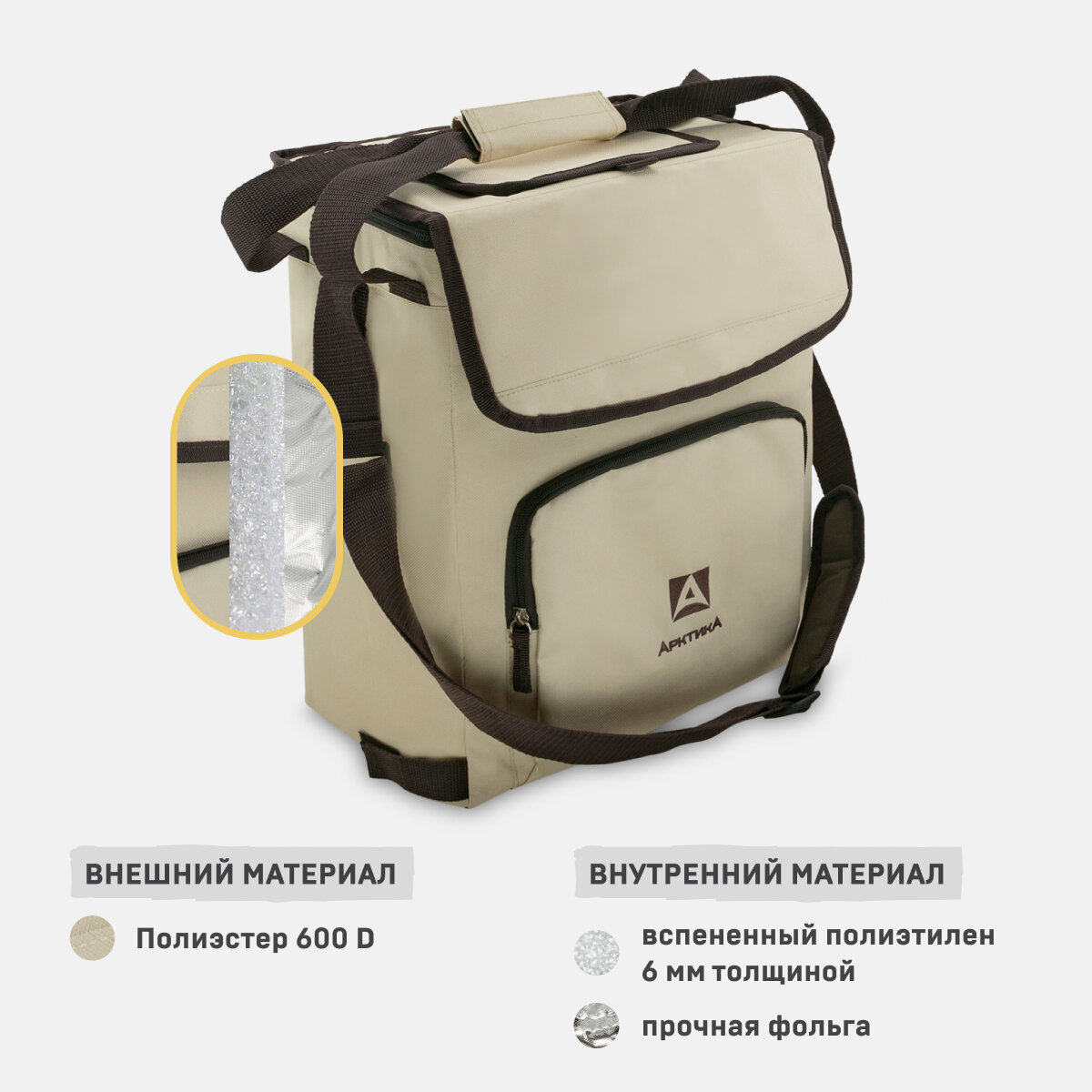 Сумка-холодильник Арктика классическая, с люком, 20л, бежевая