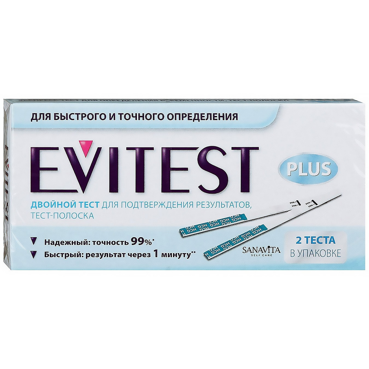 Тест Plus для определения беременности, 2 шт., EVITEST