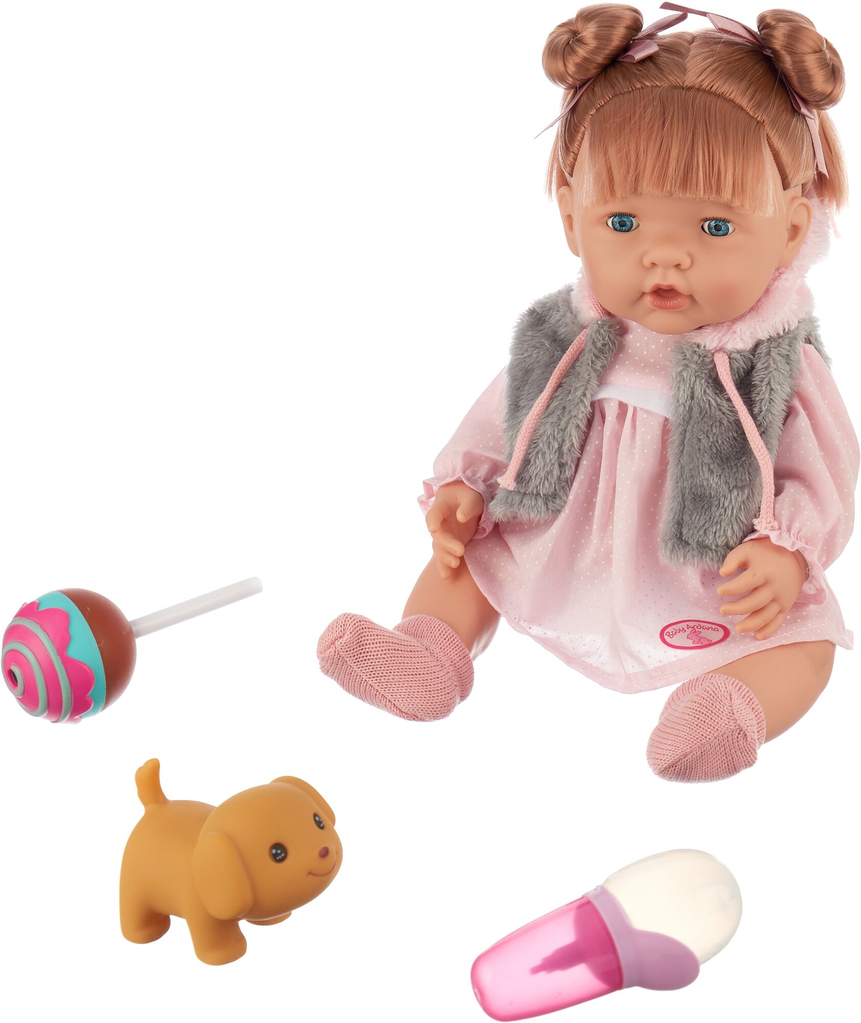 Пупс-кукла "Baby Ardana", в платье и меховой жилетке, в наборе с аксессуарами, в коробке, 40см