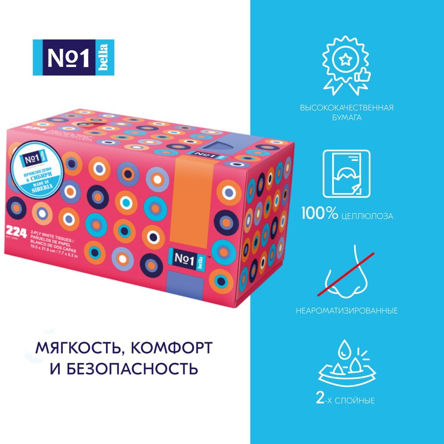 Универсальные платочки в картонной коробке bella №1 двухслойные 224 шт./ салфетки