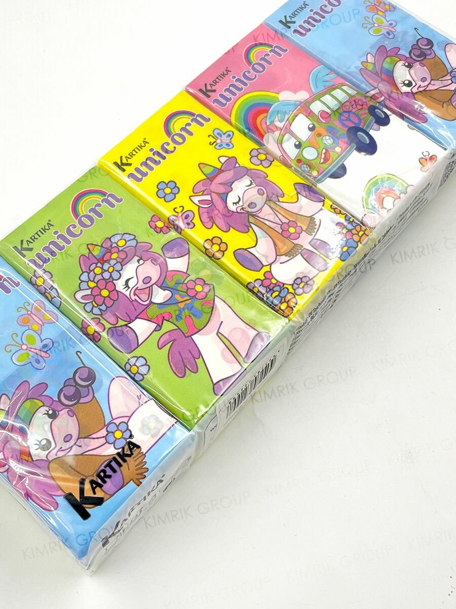 KGUNC-HS-02 Бумажные платочки "Единорог" 4-х слойные, 10 пачек, 9 листов, 21х21 см, World Cart