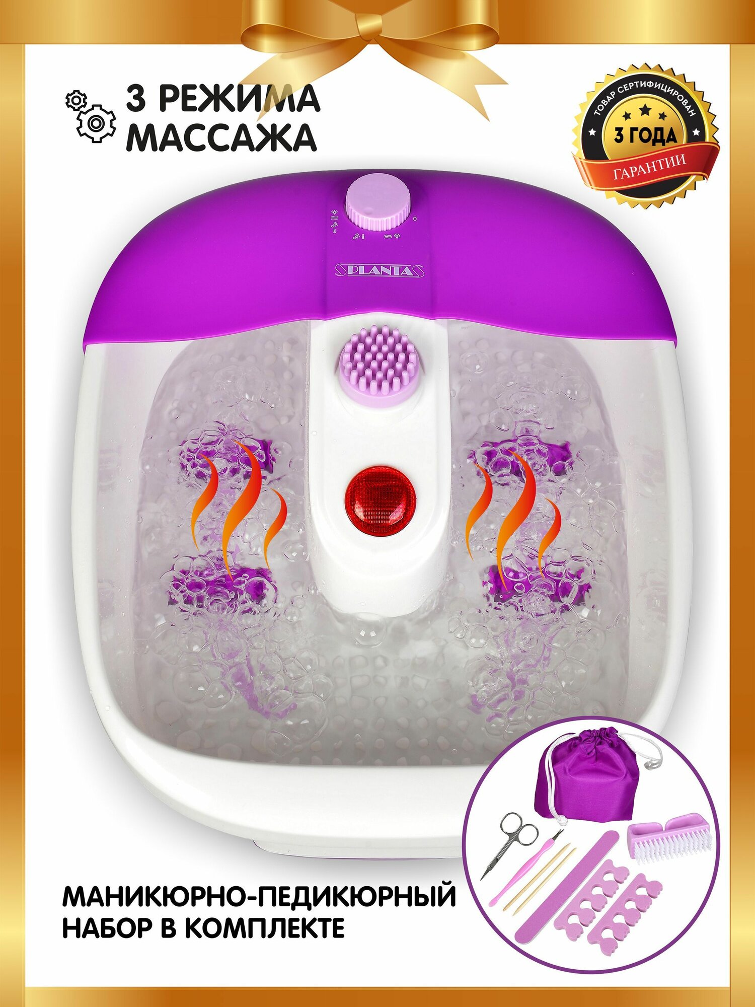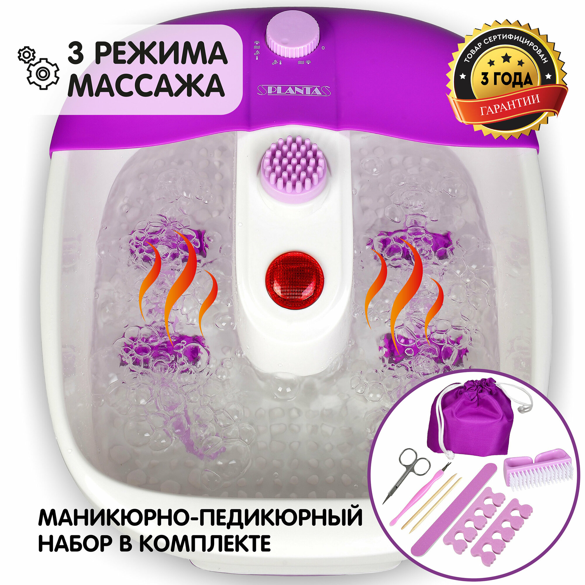 Поддержка температуры, гидромассаж, набор для педикюра.