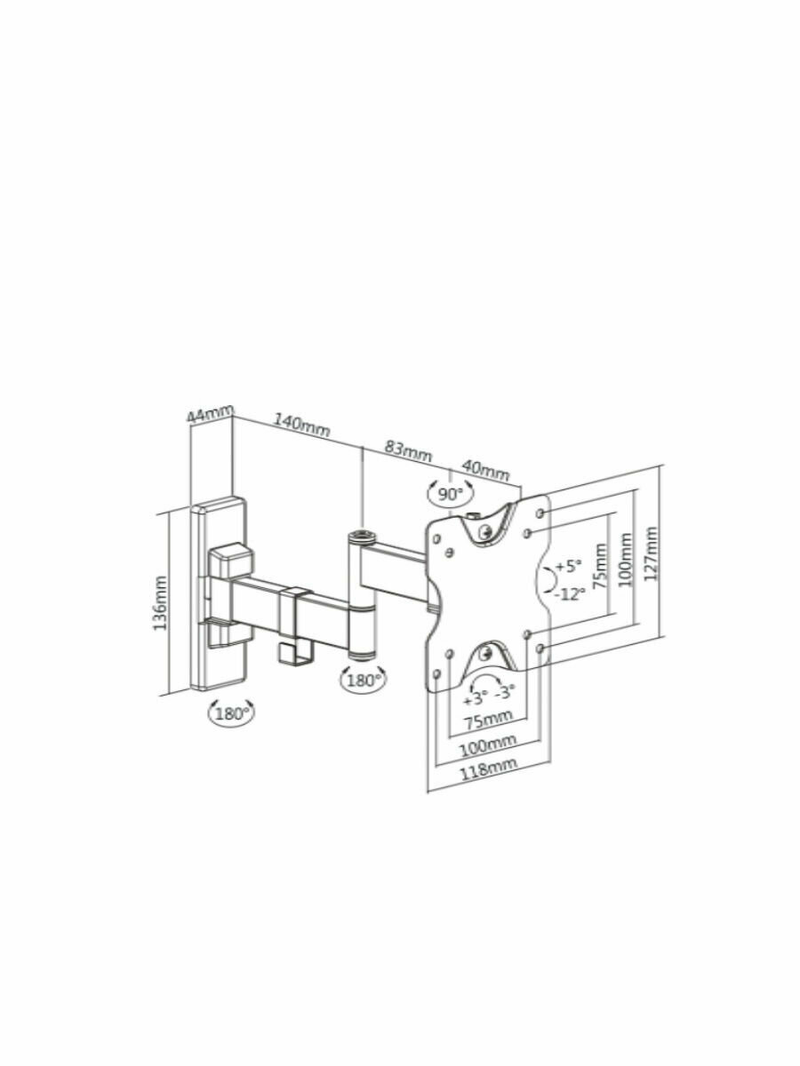 | Плюсы: | Маленький, но массивный. Крепится к стене на три надёжных шурупа (понадобится перфоратор!) Отлиная мобильность ТВ! За счёт шарнирного механизма можно отодвинуть от стены и повернуть по горизонтали. По вертикали тоже есть "люфт". Свободно держит ТВ 32 дюйма, 9 кг. Крепление 100/100 и 75/75. |