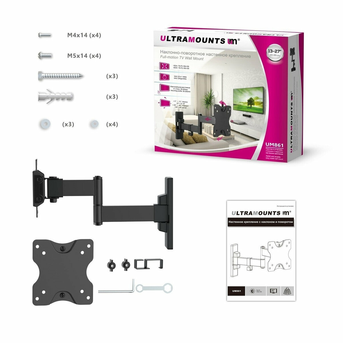 Кронштейн для телевизора ULTRAMOUNTS UM 861, 13-27", настенный, поворотно-выдвижной и наклонный, черный
