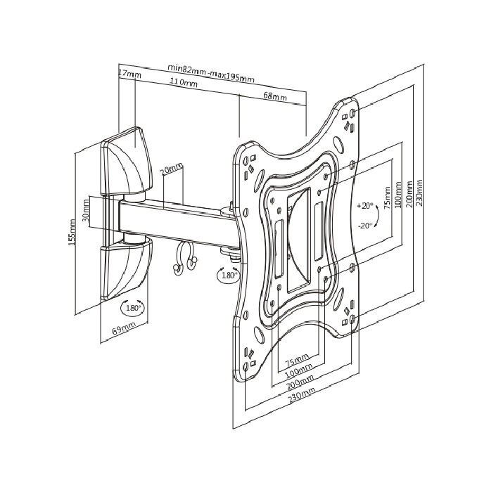 Кронштейн Ultramounts UM865 черный 23"-42" настенный от стены 82-195мм VESA 200x200 до 20кг