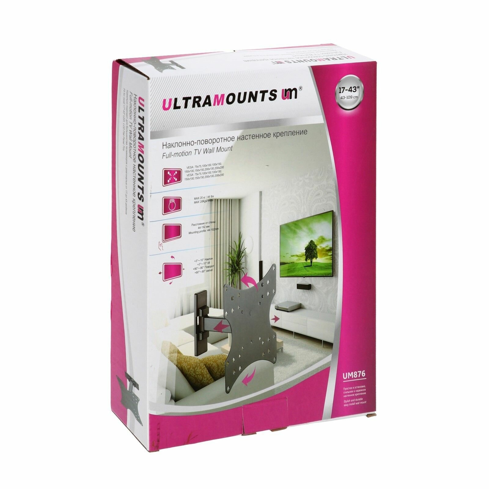 Кронштейн для телевизора ULTRAMOUNTS UM876, 17-42", настенный, поворот и наклон, черный