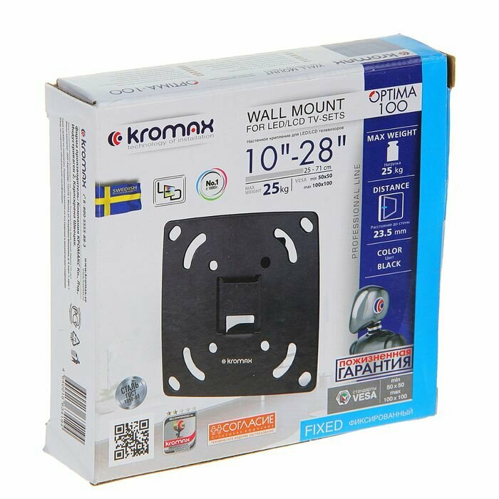 Кронштейн Kromax OPTIMA-100 черный 10-28 макс.25кг настенный фиксированный