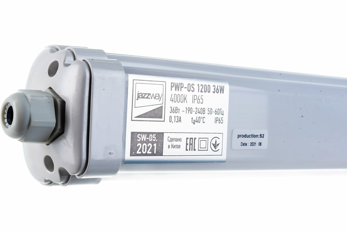 Светильник светодиодный промышленный ДСП 36Вт PWP-OS 1200мм 4000К 2900Лм с креп клипсами IP65 .5003132 Jazzway