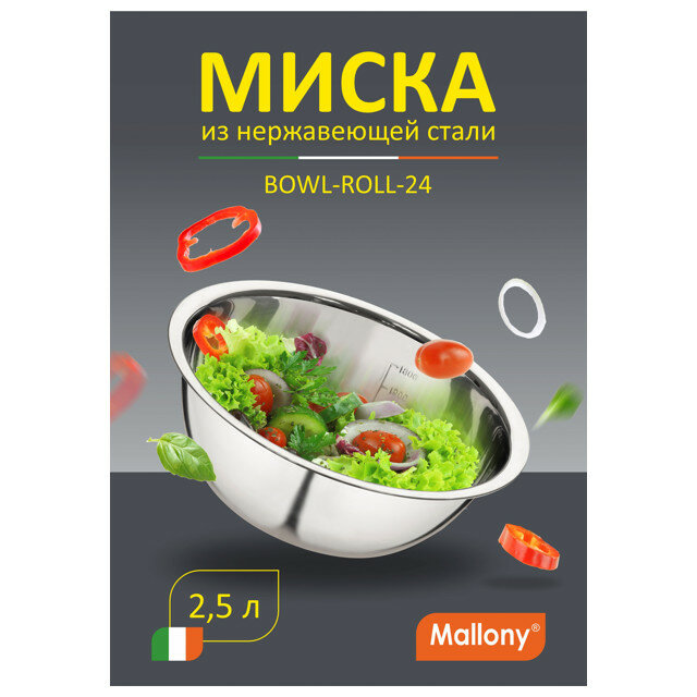 Mallony Миска Bowl-Roll-24 объем 2,5 л из нерж стали зеркальная полировка диа 24 см 003278 .