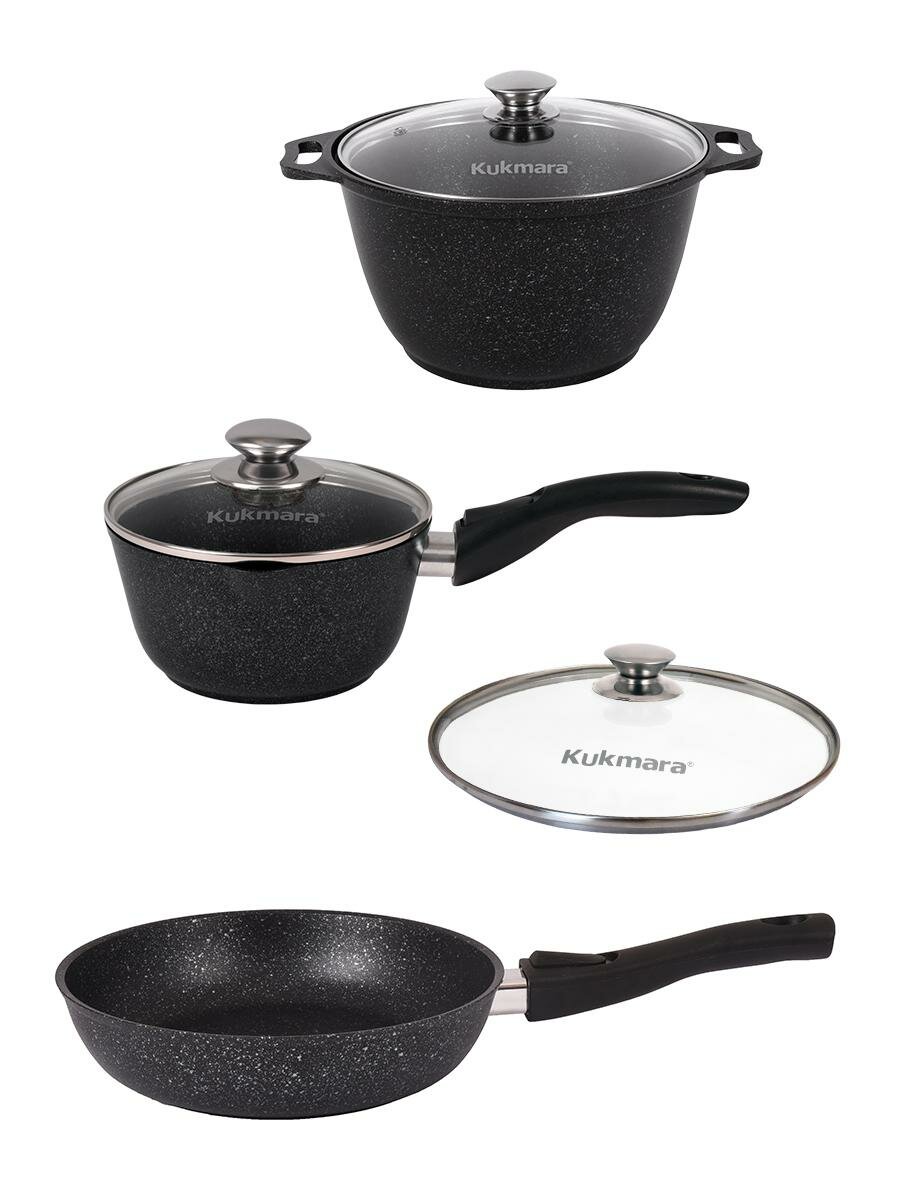 Набор посуды Kukmara Кукмара №3 антипригар покрытие Темный Мрамор кастрюля 4 л ковш 1,5 л Сковорода 24 см Общая крышка нкп03мт