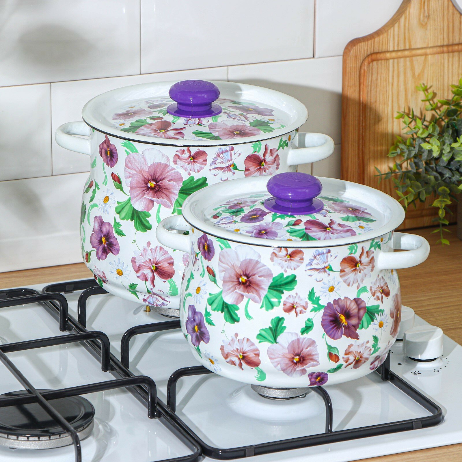 Сибирские товары Набор кастрюль «Анютины глазки», 2 предмета: 4 л, 5,5 л, эмалированные крышки, индукция