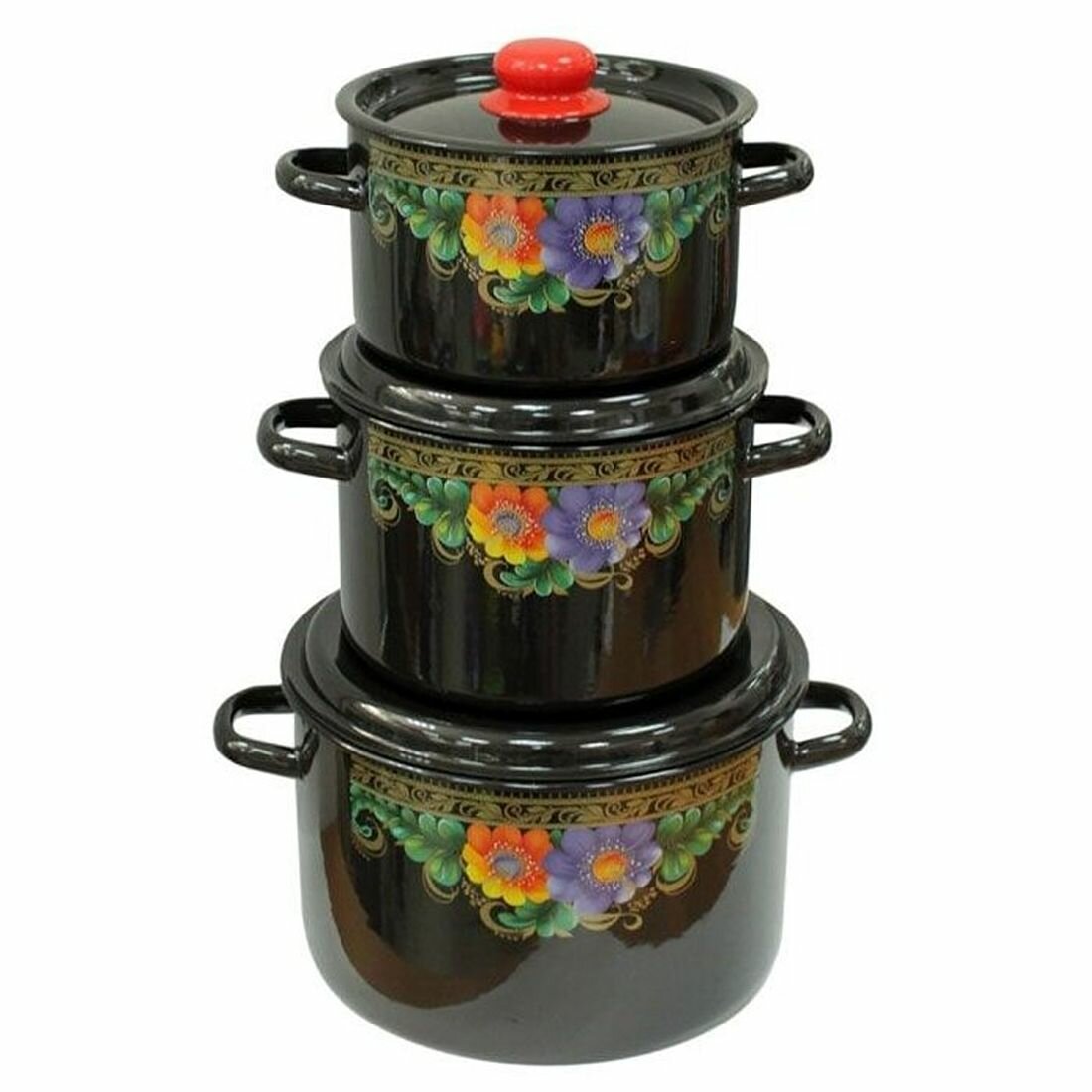Набор эмалированных кастрюль вологда черный (1,5л+2,9л+4,5л), Череповец.
