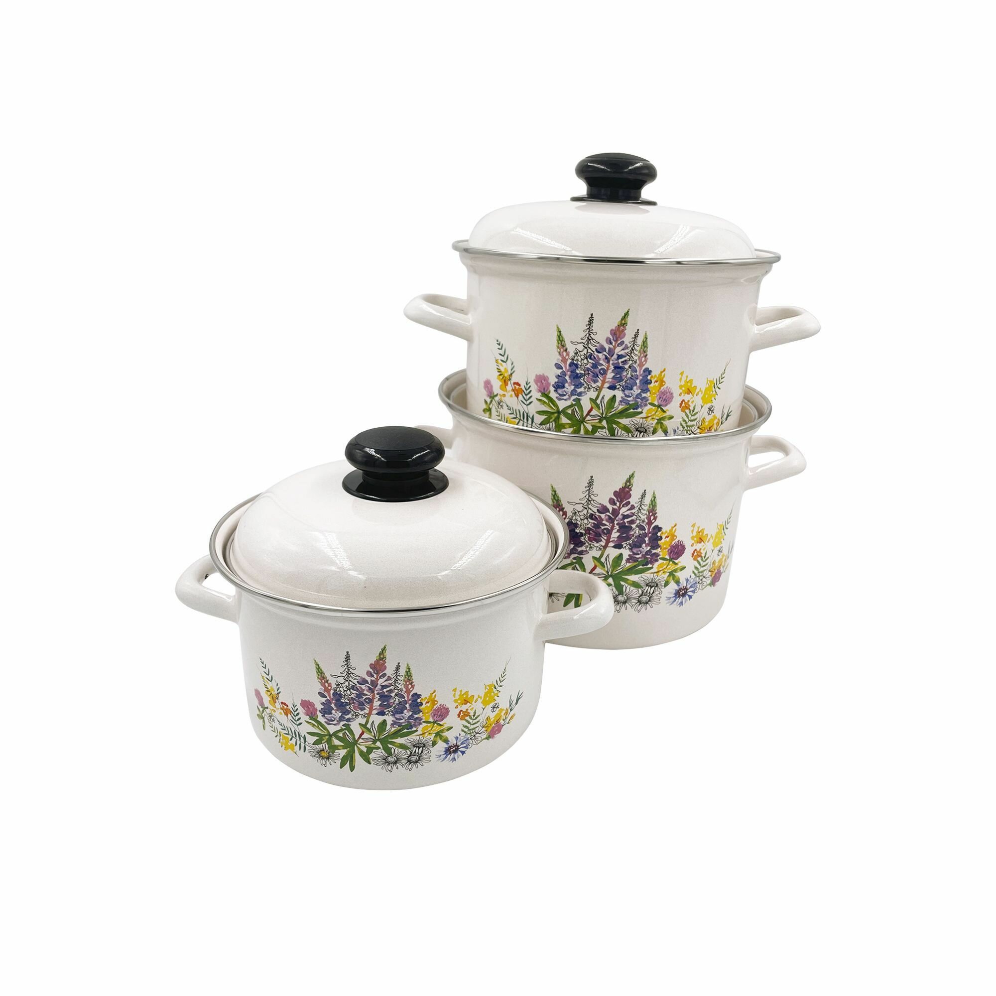 Набор эмалированных кастрюль 1,5 л, 2 л, 3 л Ромашковое поле Лысьвенские эмали