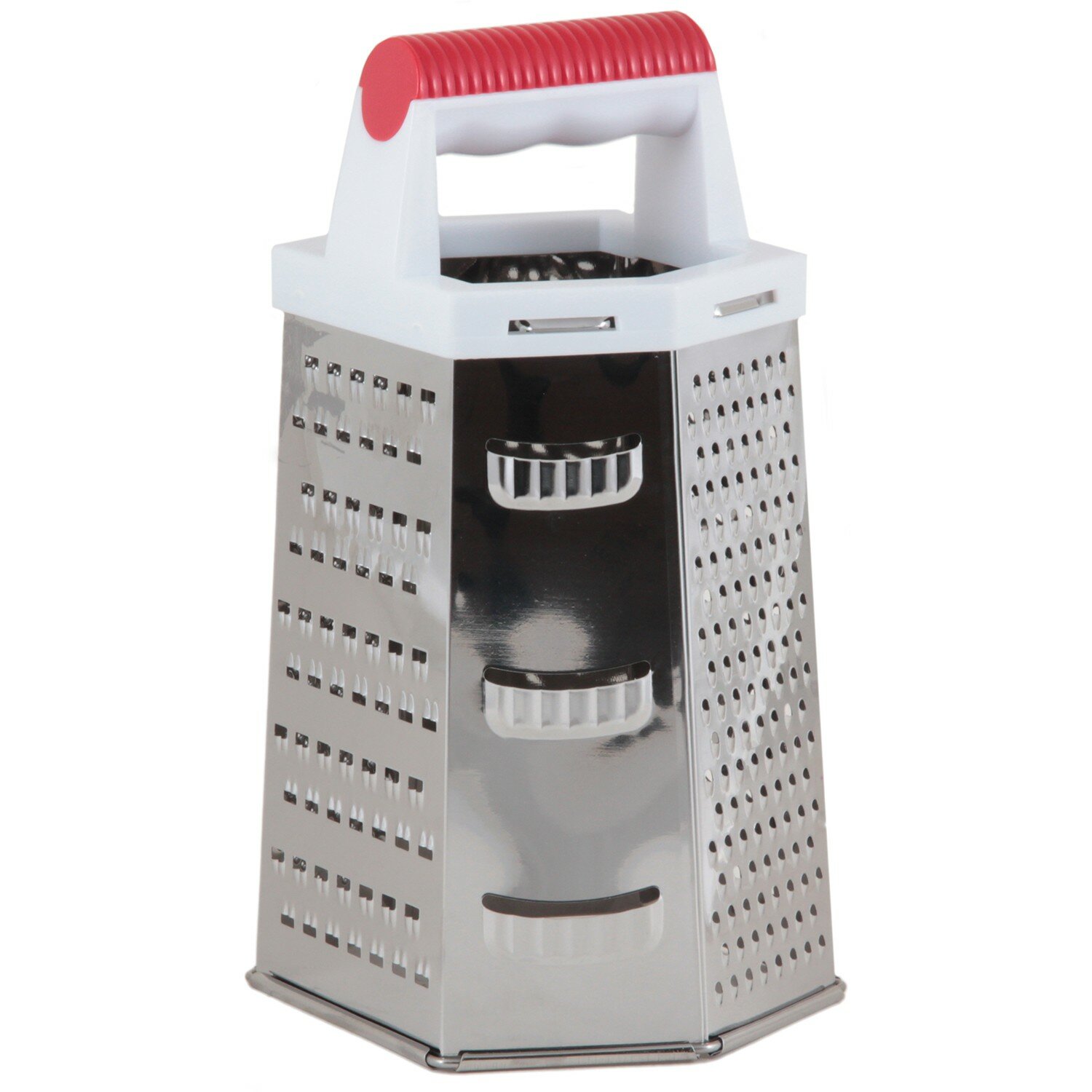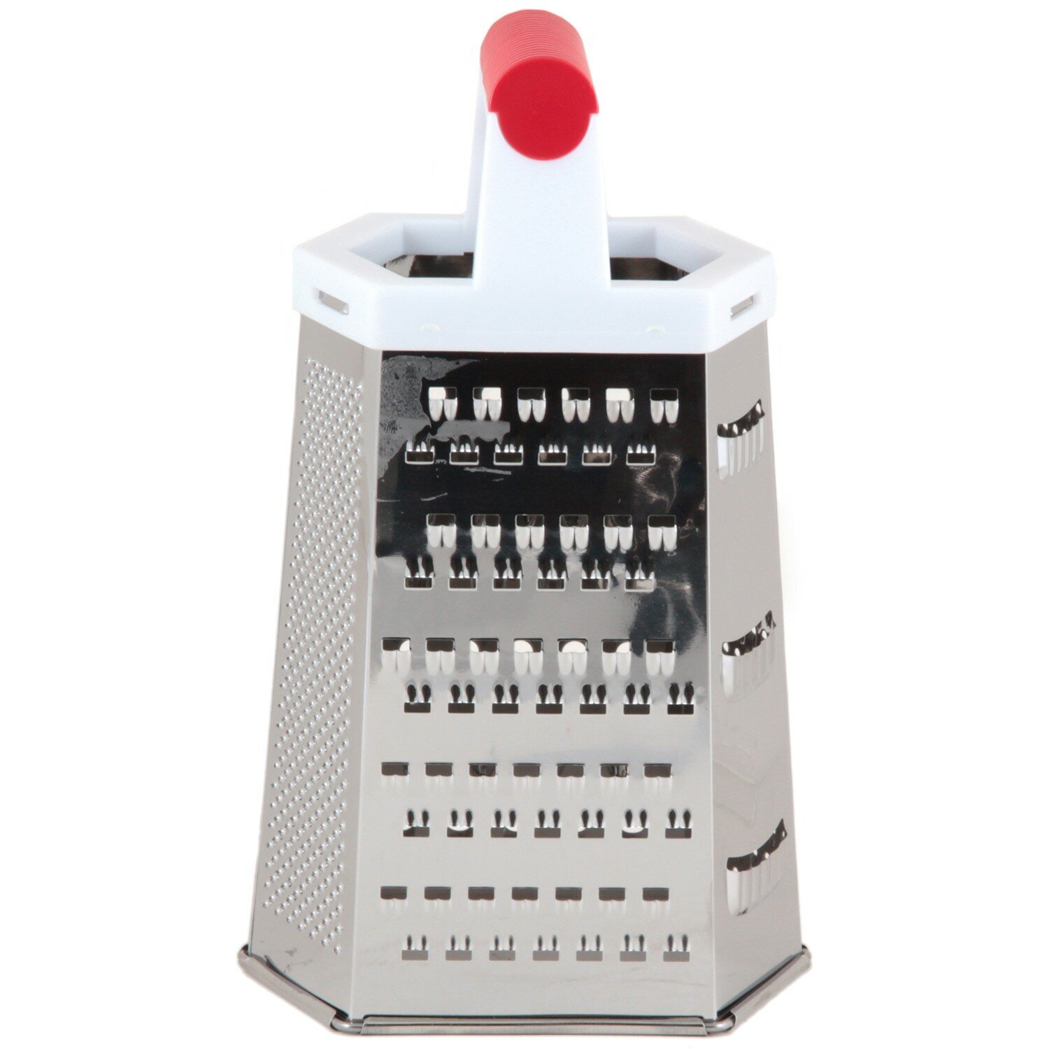 Терка из нержавеющей стали Mallony / Меллони GR-001-9 шестигранная с пластиковой ручкой, серебристый 13.7×11.3×22.9см / аксессуары для кухни