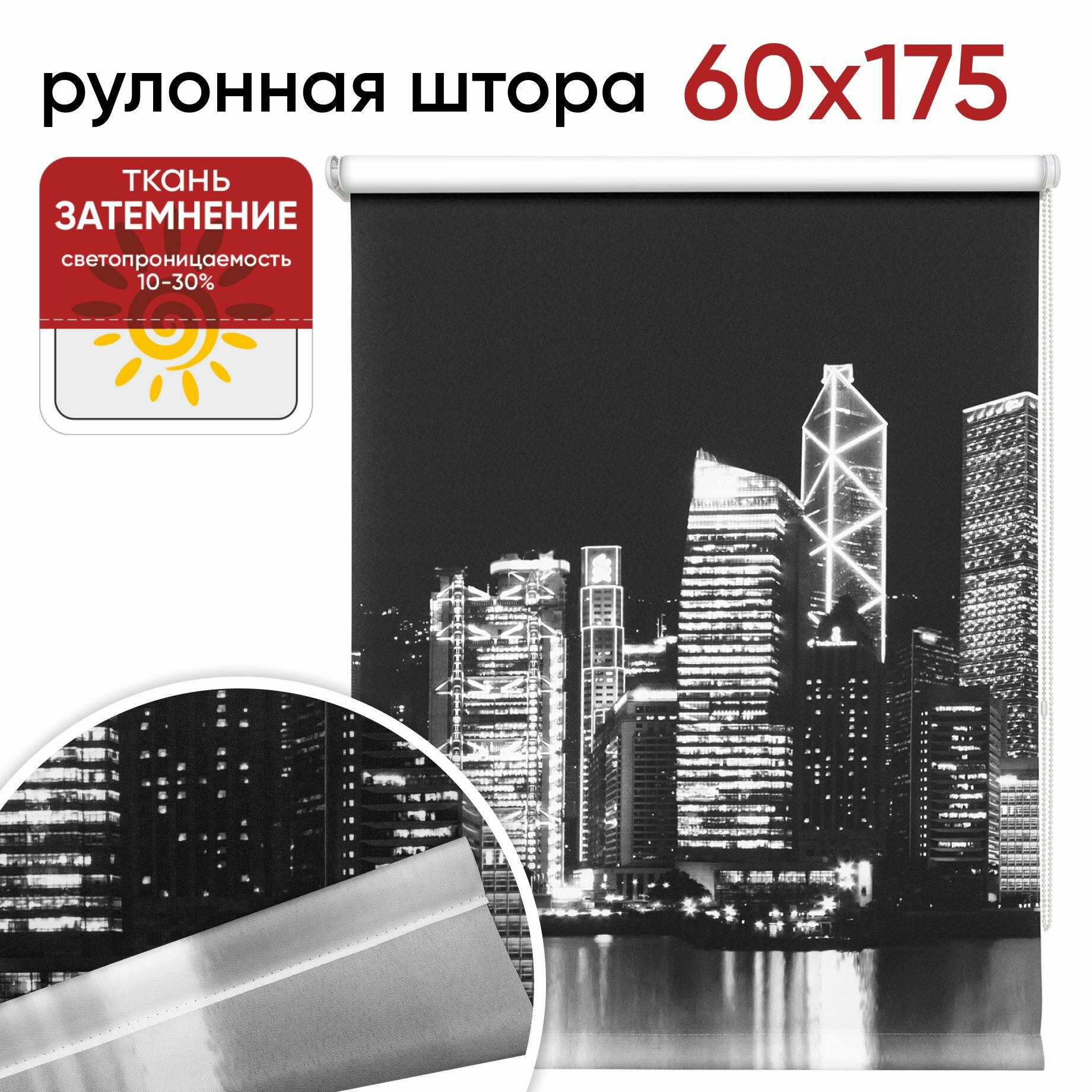 Рулонная штора УЮТ 60 см высота 175 см, Сити ночь, рольштора полиэстер, затемнение 70%