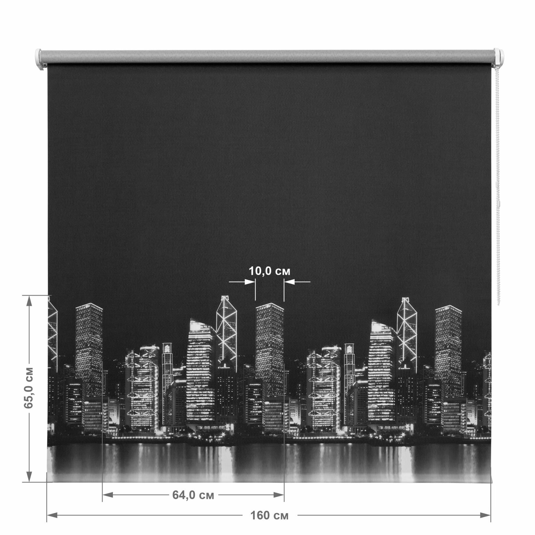 Рулонная штора УЮТ на окно 48 см высота 175 см, Сити ночь, рольштора полиэстер, затемнение 70%