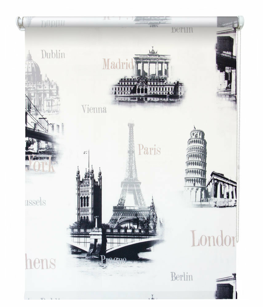 Рулонная штора УЮТ 85 см Глобал пестрый высота 175 см, рольштора полиэстер, затемнение 70%