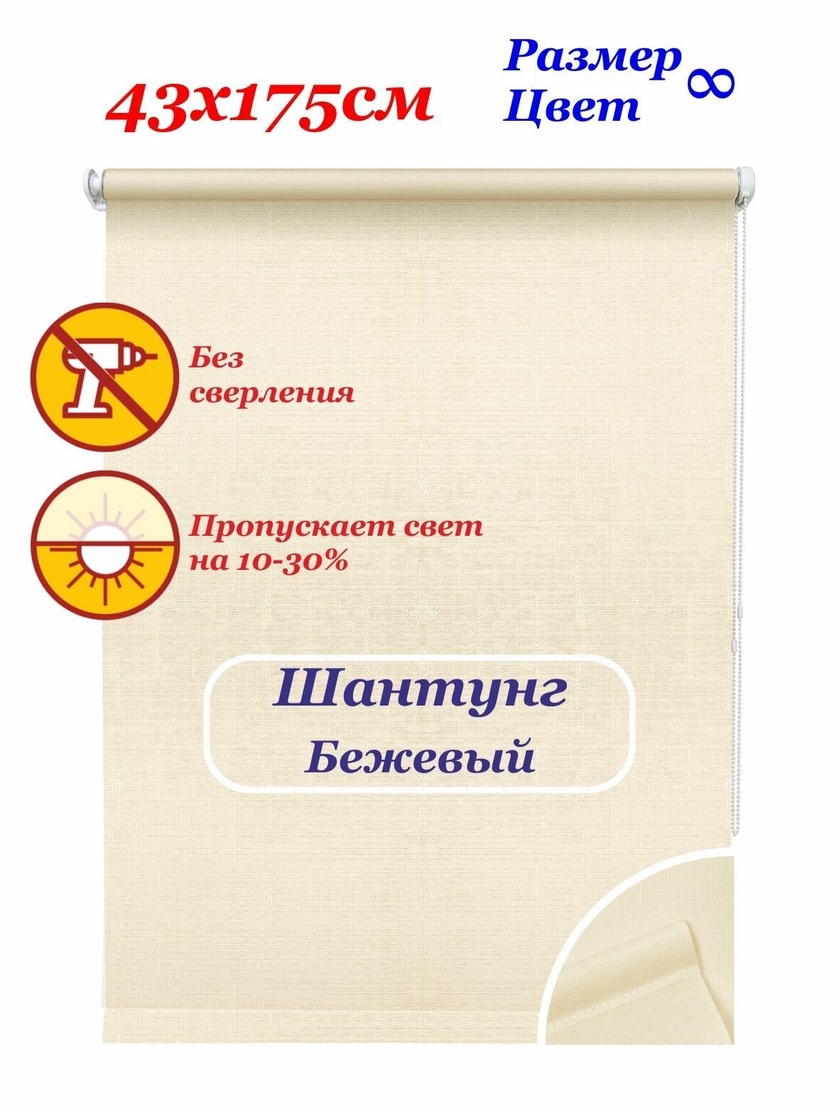 СохранитьРулонные шторы УЮТ 43 см высота 175 см бежевый Шантунг, рольштора полиэстер, затемнение 70% интересное: